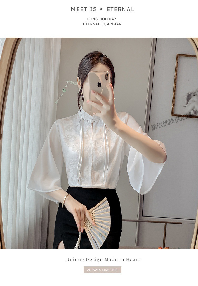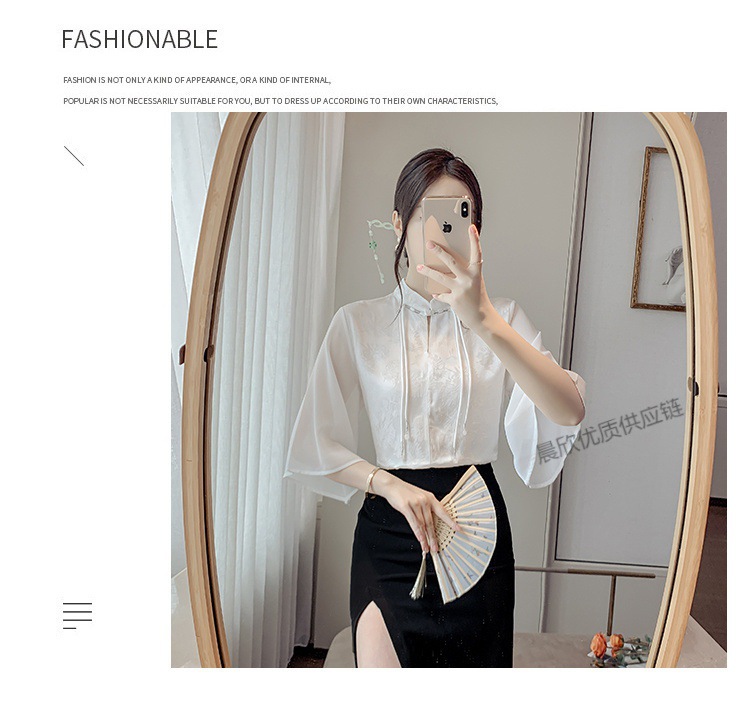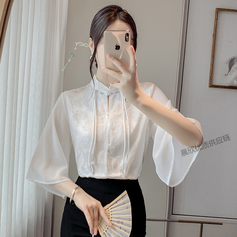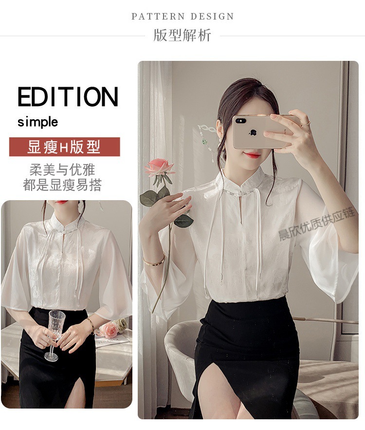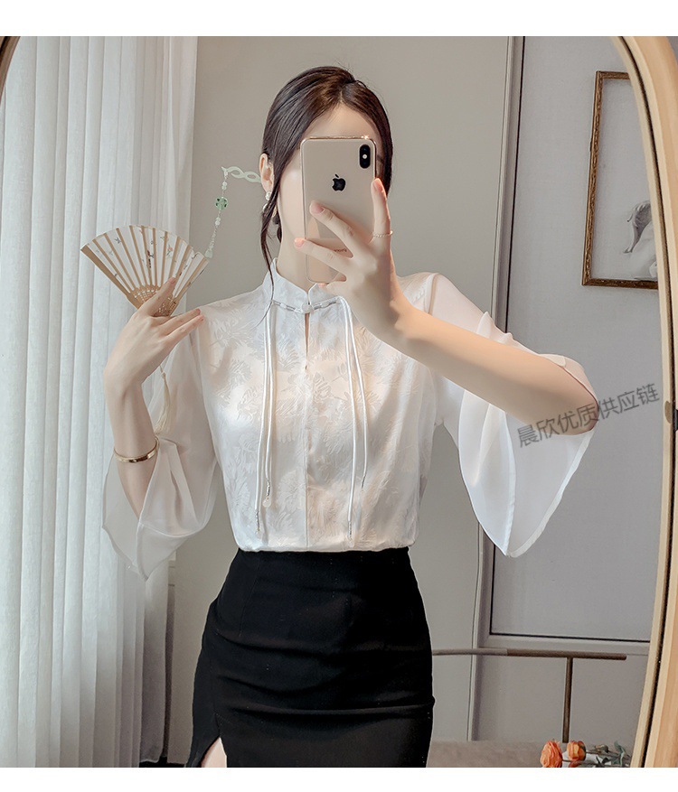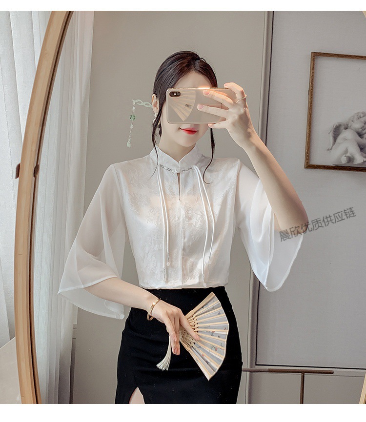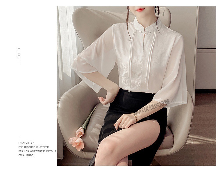 말 얼굴 스커트가있는 반팔 셔츠 새로운 중국 스타일 국가 스타일 화이트 기타 비행 소매 중국 요소 개선 된 한푸 탑