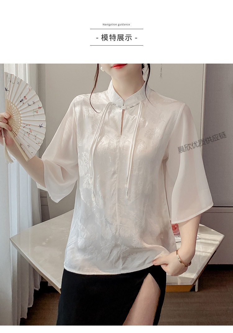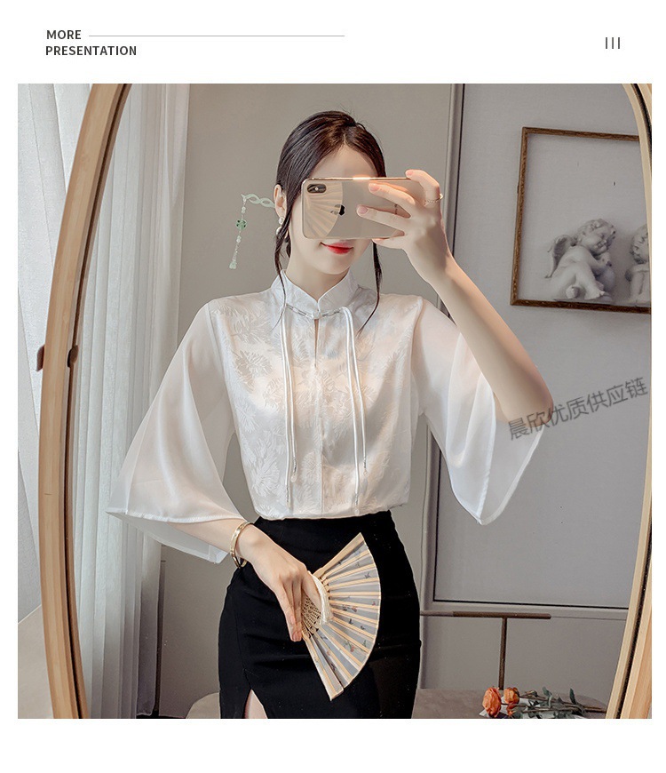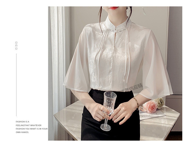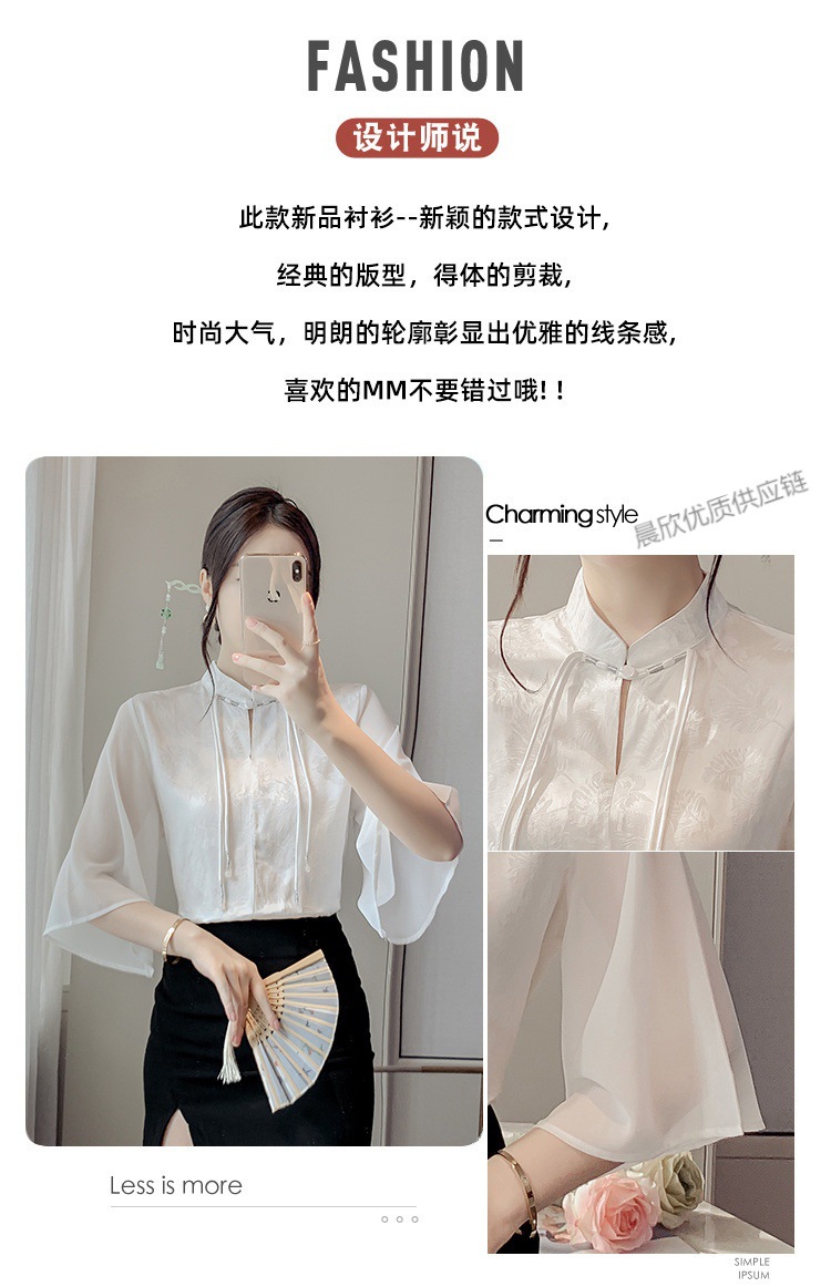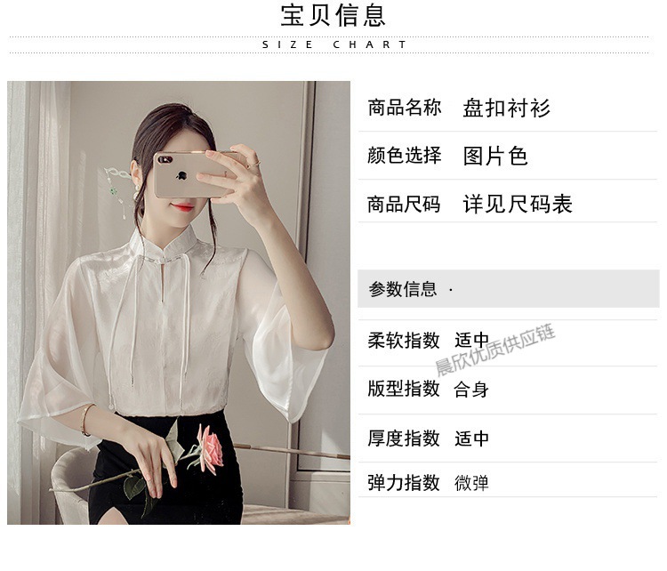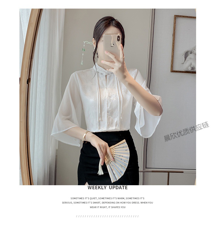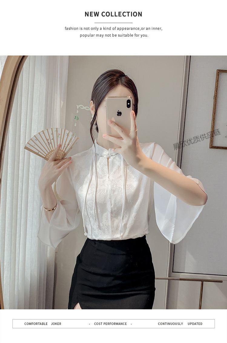 말 얼굴 스커트가있는 반팔 셔츠 새로운 중국 스타일 국가 스타일 화이트 기타 비행 소매 중국 요소 개선 된 한푸 탑