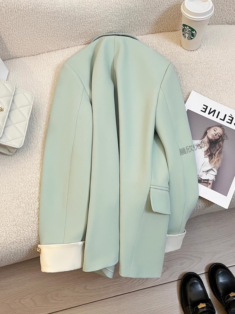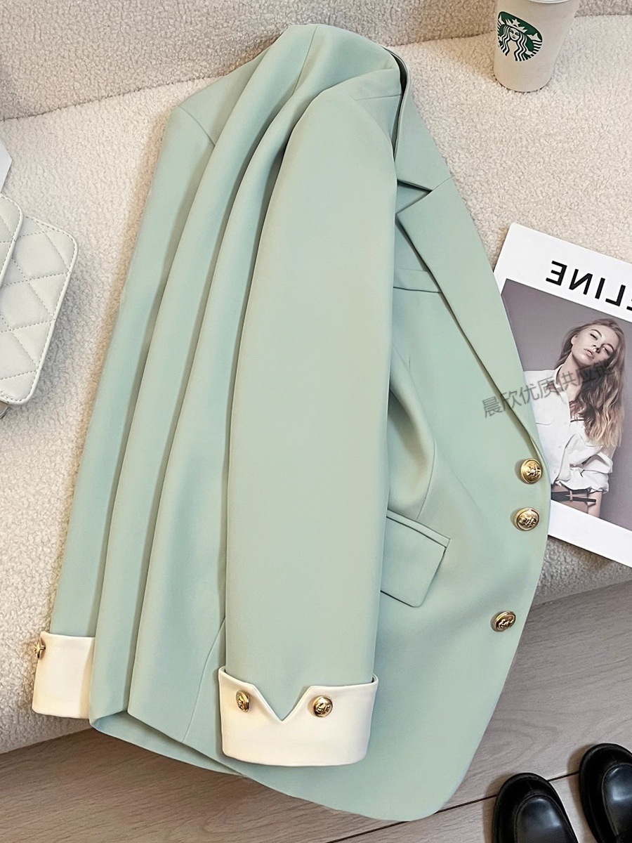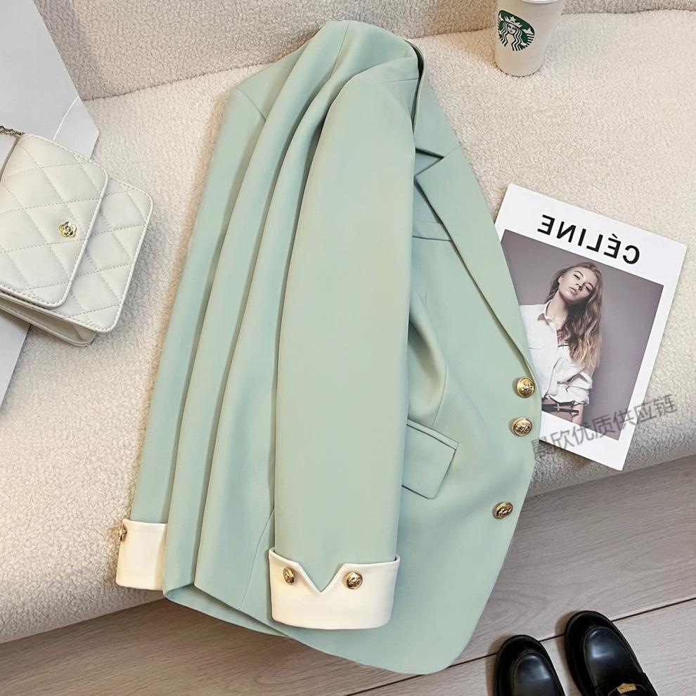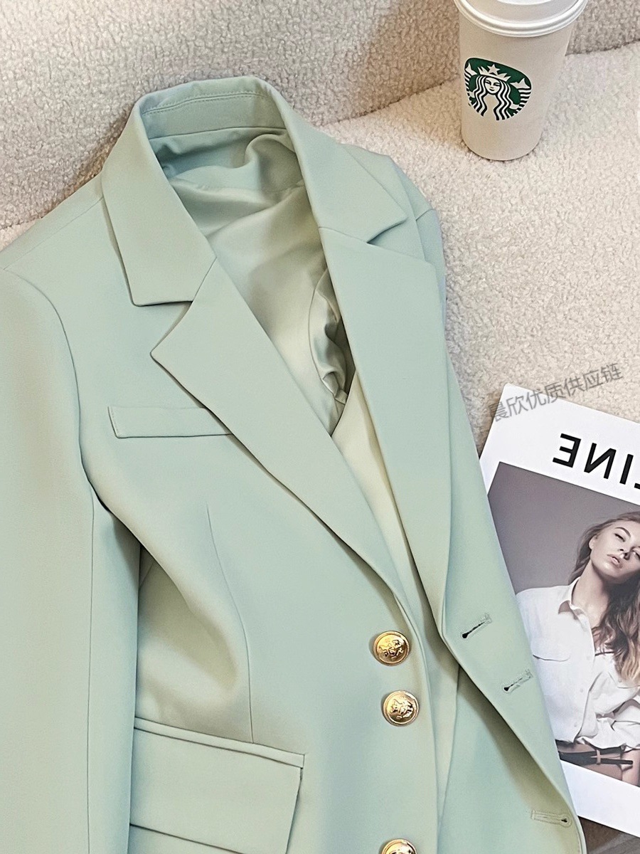 민트 콩 녹색 봄과 가을 연꽃 잎 칼라 코트 여성의 새로운 디자인 센스 더 작은 인터넷 연예인 튀김 거리 품질 세트 트렌디스토어 가기