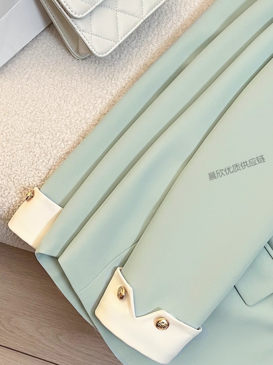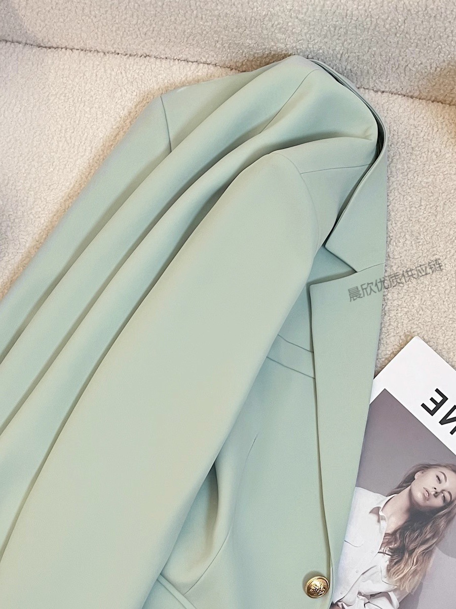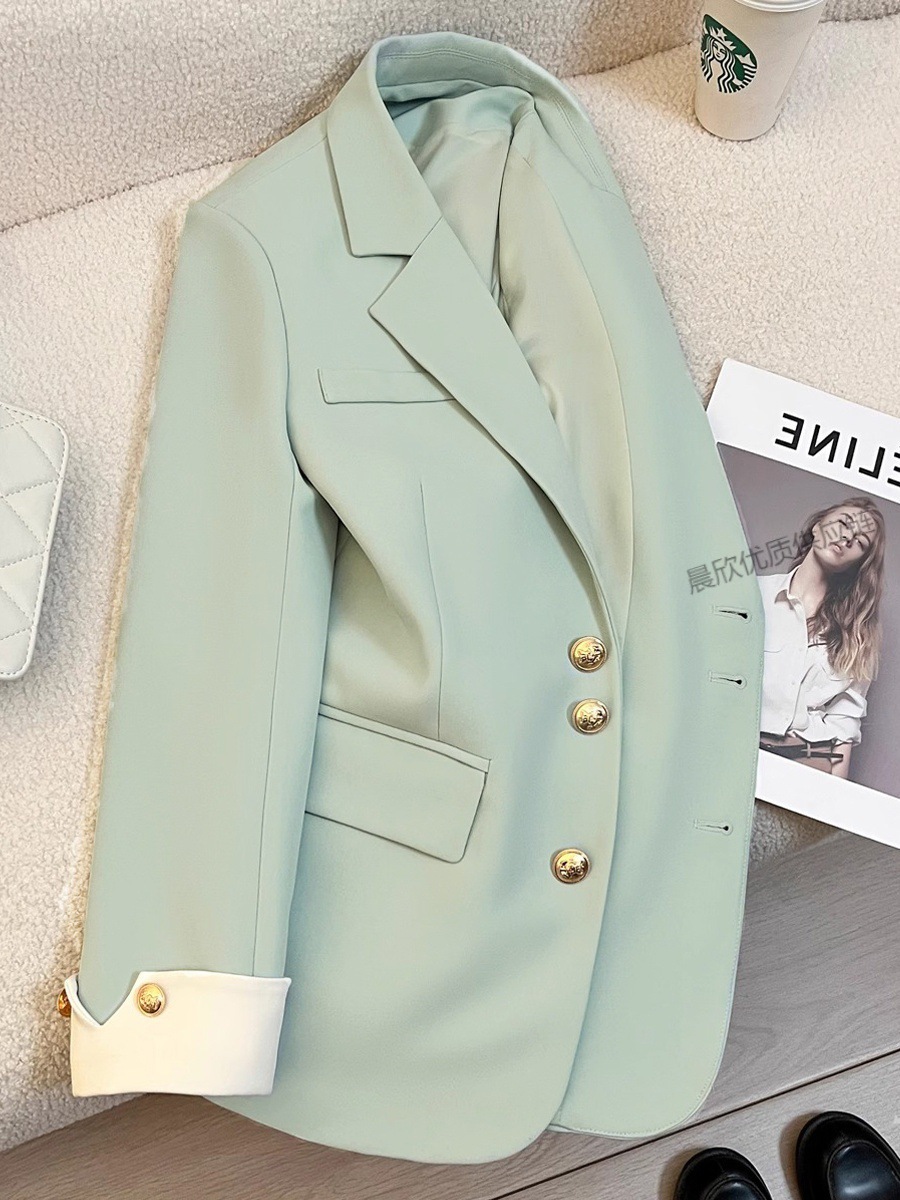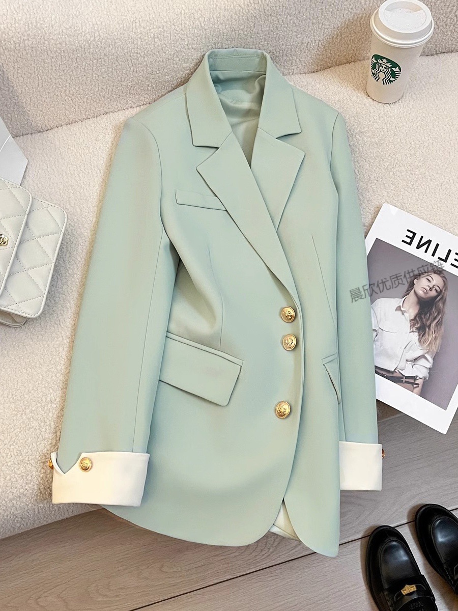 민트 콩 녹색 봄과 가을 연꽃 잎 칼라 코트 여성의 새로운 디자인 센스 더 작은 인터넷 연예인 튀김 거리 품질 세트 트렌디스토어 가기