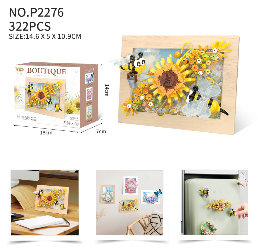 • High-P2276 꿀벌 해바라기 이야기 (자기 기능이있는 사진 프레임)