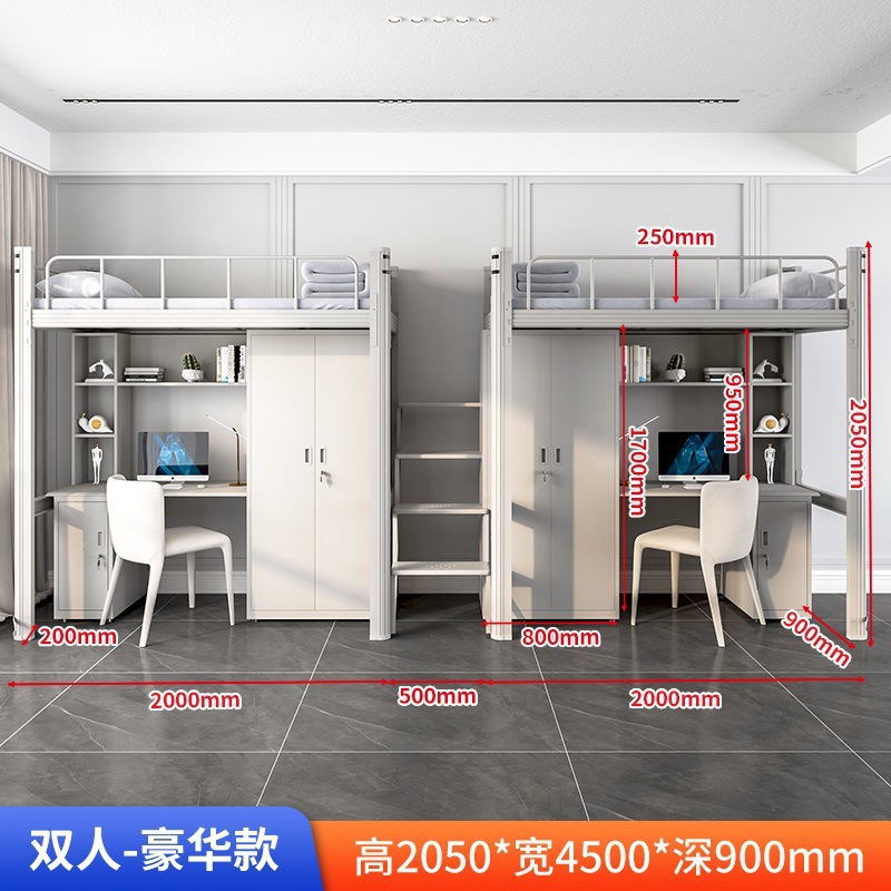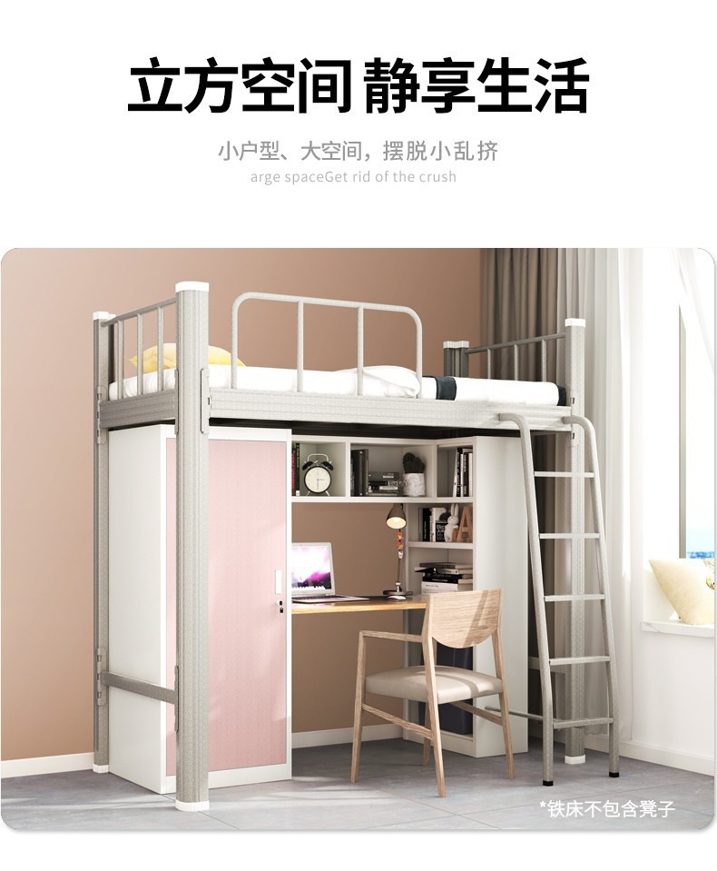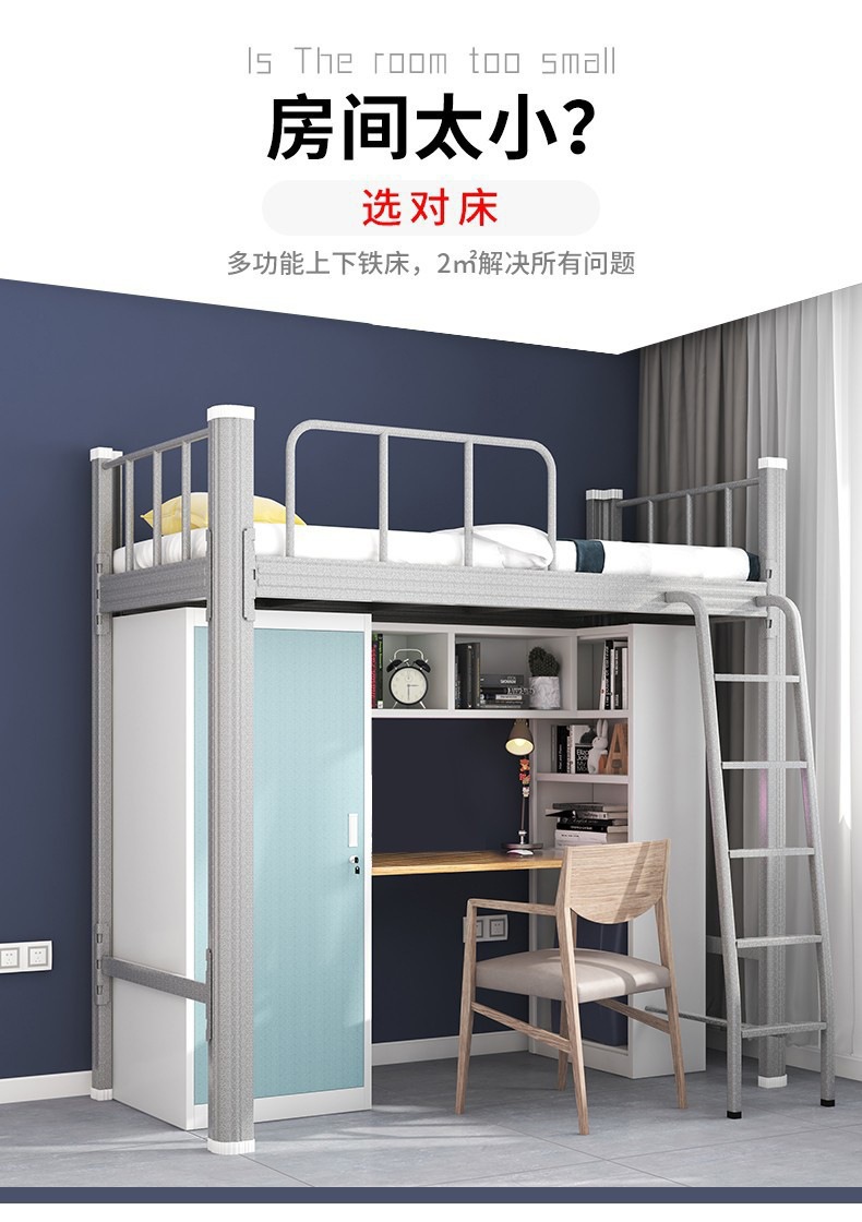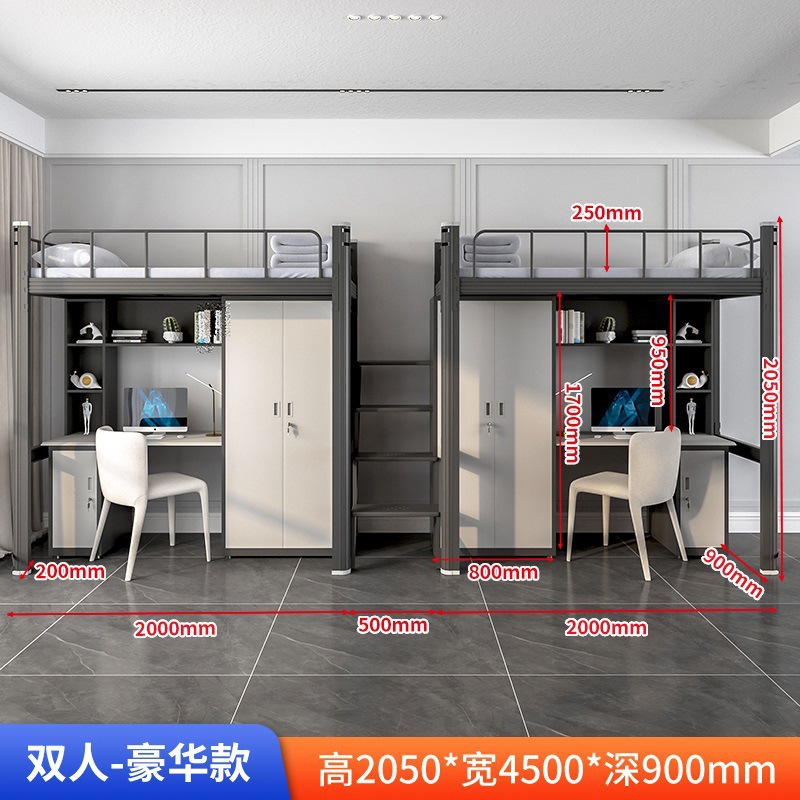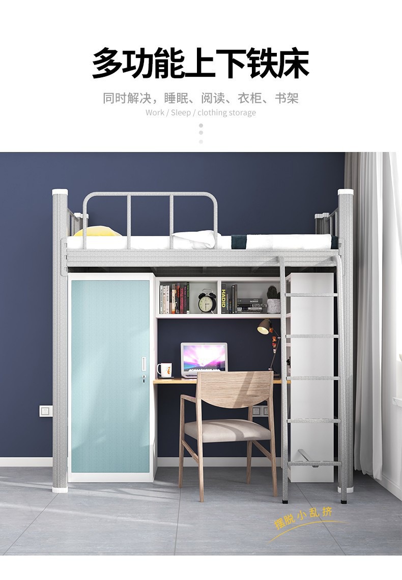 현대적인 단순한 두꺼운 철제 이층 침대, 테이블 조합 아파트 침대, 학생 기숙사 이층 침대스토어 가기