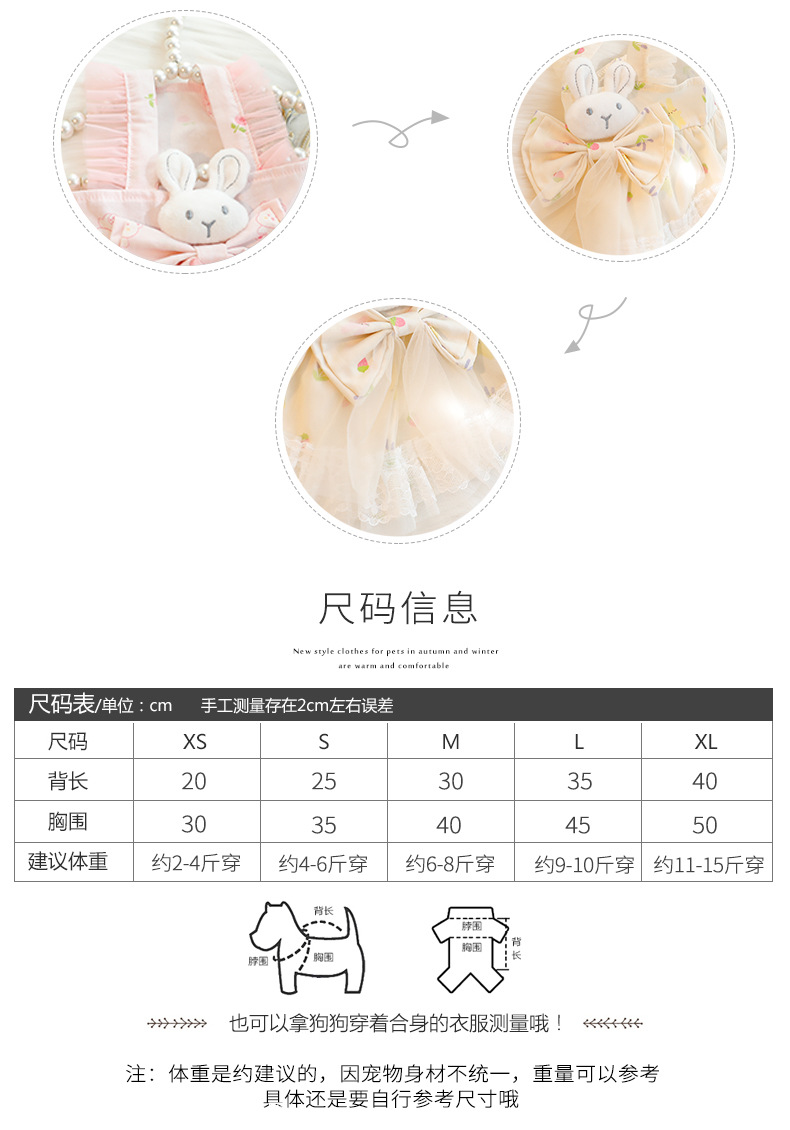 개 옷 봄과 여름 얇은 고양이 공주 원피스 달콤한 토끼 슬링 거즈 원피스 귀여운 작은 개 테디 애완 동물 5729