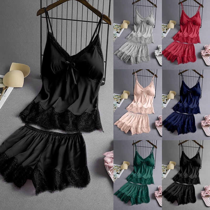 유럽과 미국의 대외 무역 국경 간 판매 패션 여성 파자마 레이스 레이스 슬링 투피스 홈 의류 스위트 파자마스토어 가기
