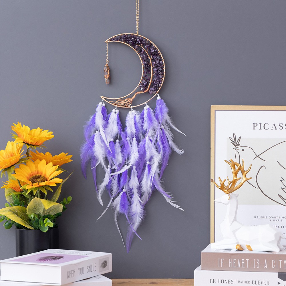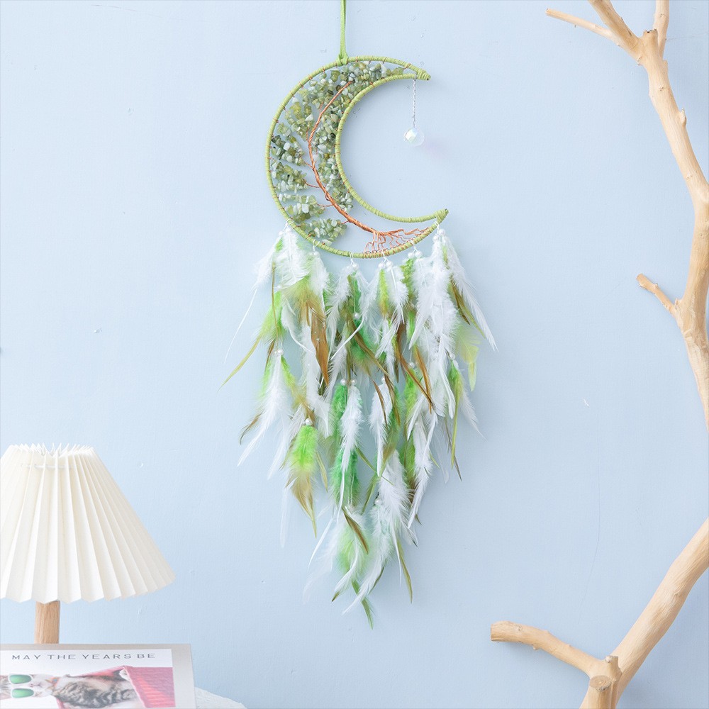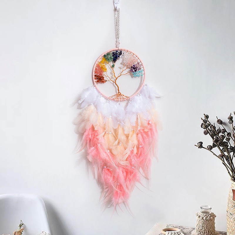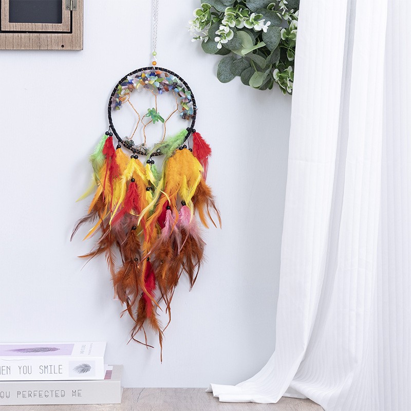 자연 자갈 생활 나무의 다양한 국경 폭발 꿈 포수 장식품 컬러 깃털 바람 차임 벽 장식 펜던트