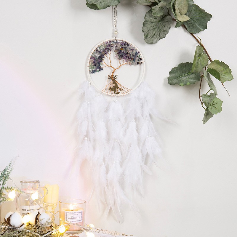 자연 자갈 생활 나무의 다양한 국경 폭발 꿈 포수 장식품 컬러 깃털 바람 차임 벽 장식 펜던트스토어 가기