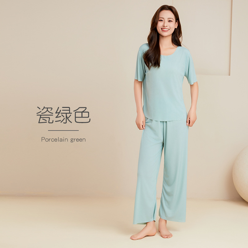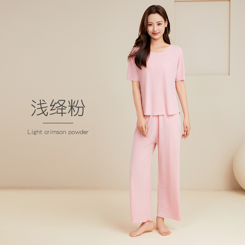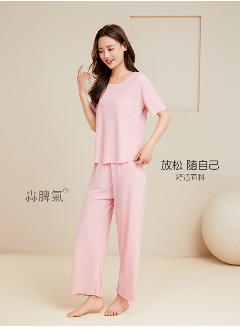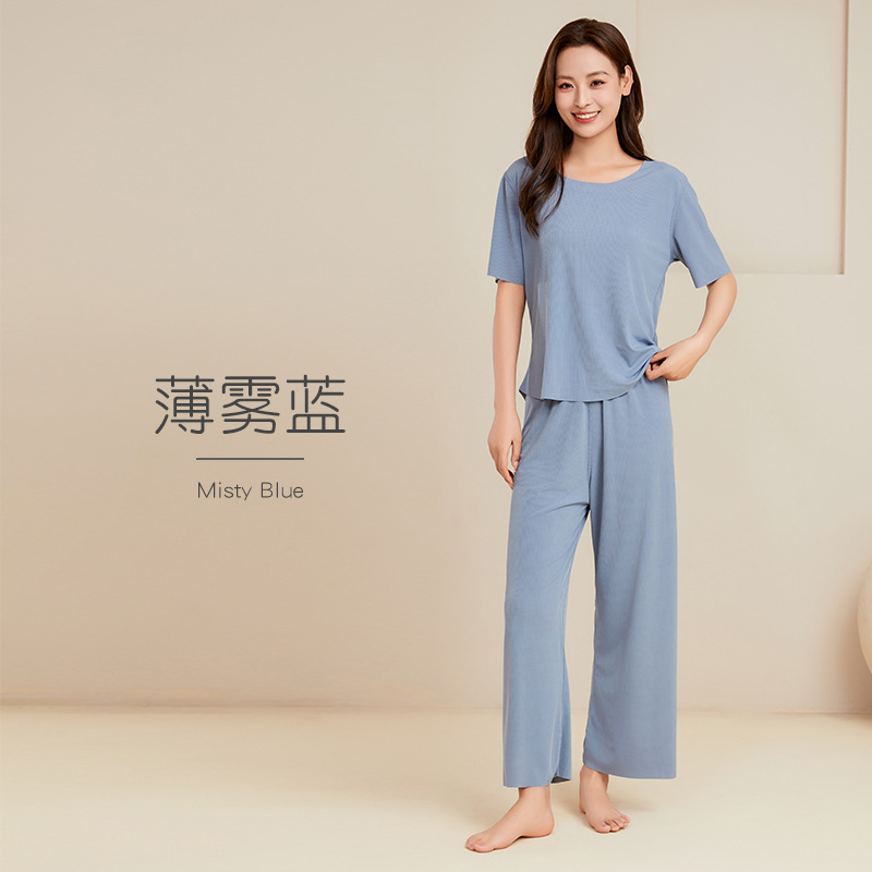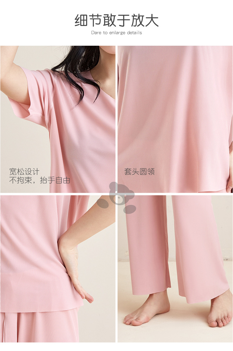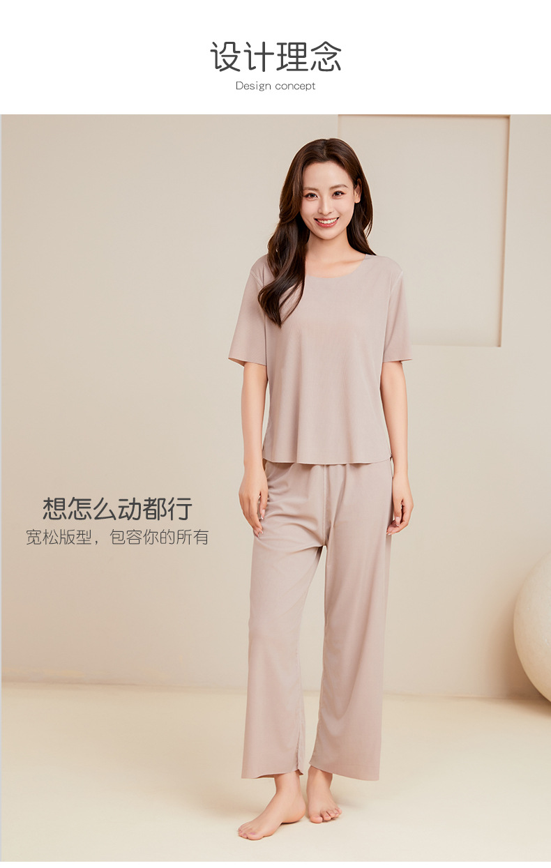 남성용 아이스 실크 잠옷 홈웨어 세트 커플용 얇은 라운드넥 반팔 대형 사이즈 캐주얼 여성용 무봉제 단색 도매스토어 가기