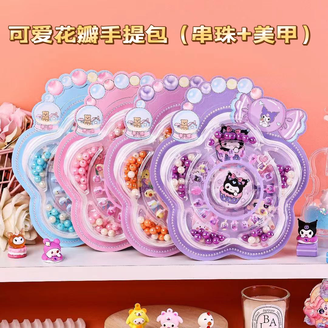 새로운 산리오 네일 구슬 세트 소녀 수제 창조적 인 DIY 원피스 업 스티커 꽃잎 핸드백 도매스토어 가기