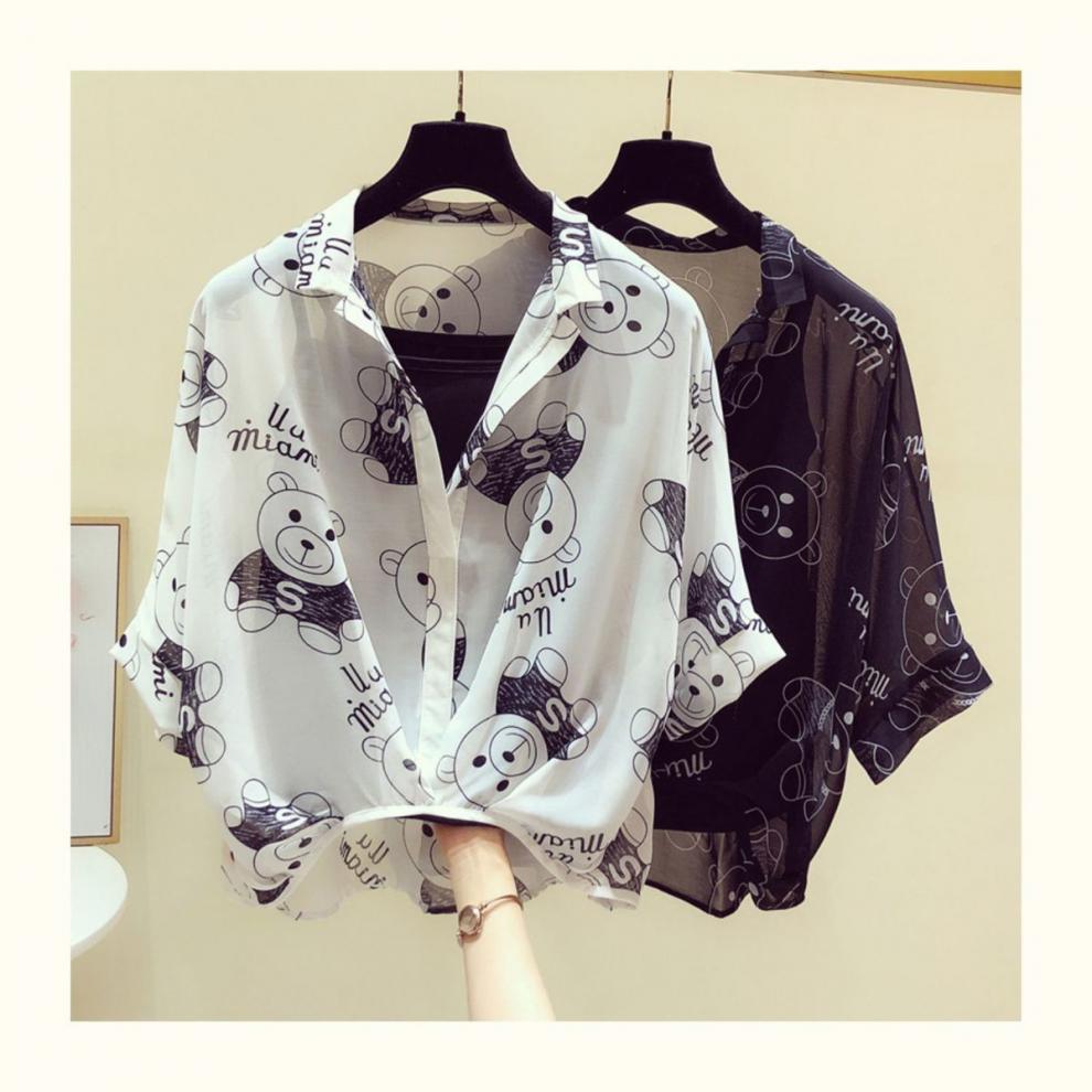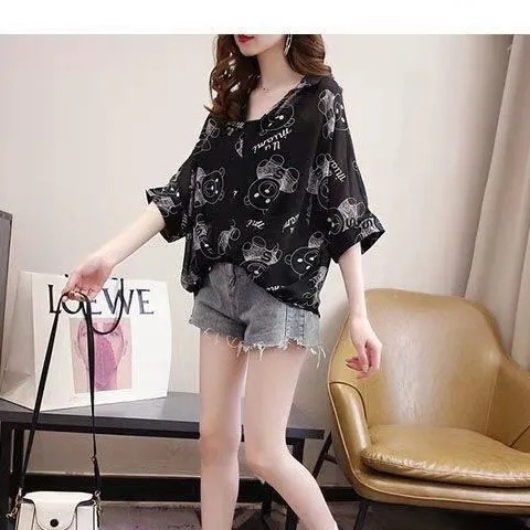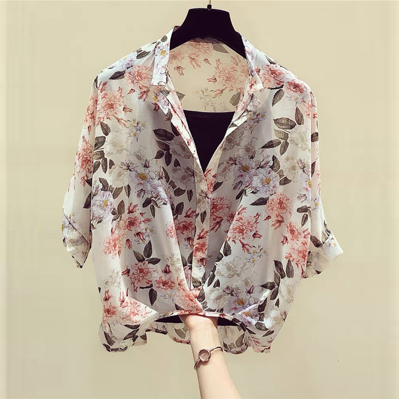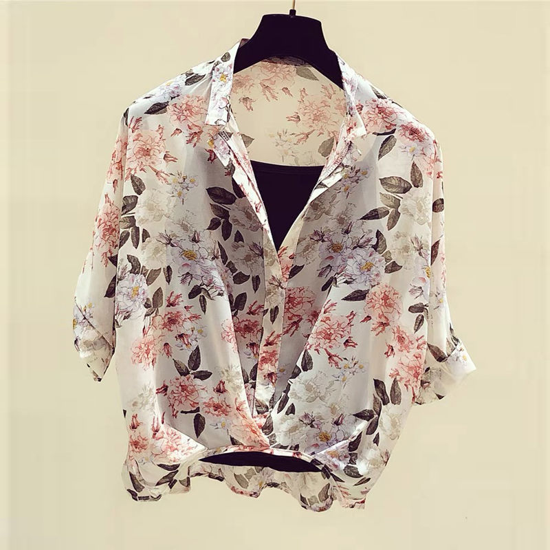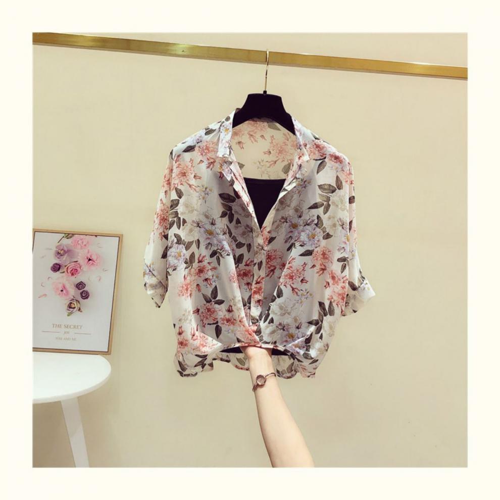 쉬폰 셔츠 곰팡이, 인쇄 된 여성의 여름 느슨한 반팔 허리 탑 새로운 스타일 작은 꽃 유행 작은 셔츠스토어 가기