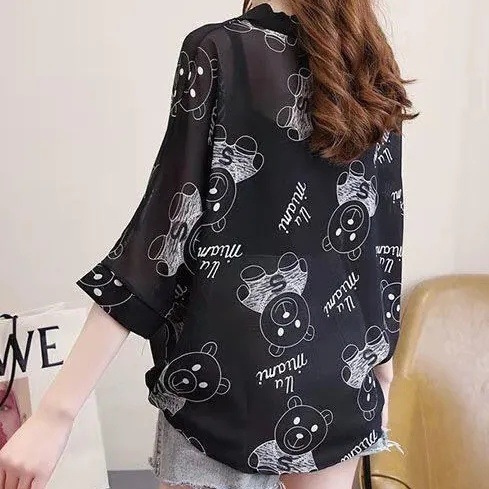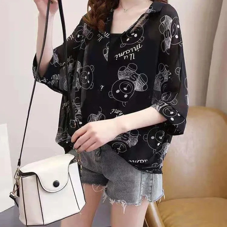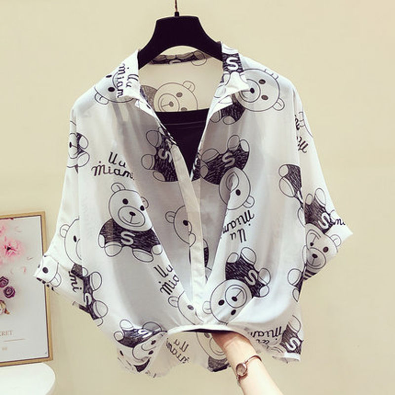 쉬폰 셔츠 곰팡이, 인쇄 된 여성의 여름 느슨한 반팔 허리 탑 새로운 스타일 작은 꽃 유행 작은 셔츠