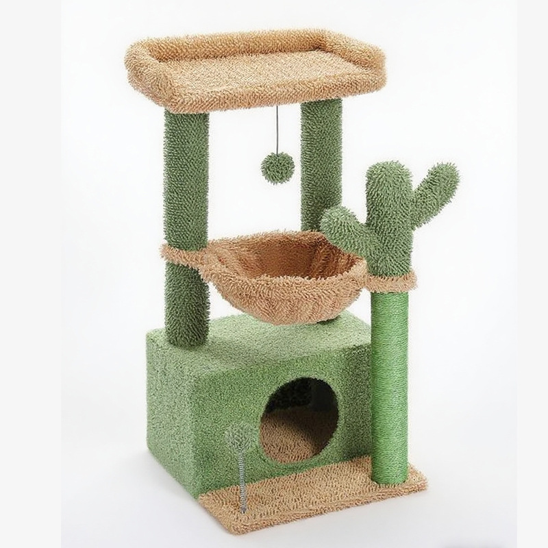 새로운 선인장 모양 고양이 클라이밍 프레임, 내마모성, 깨짐 없음, 고양이가 스스로 즐겁게 할 수 있는, 지루함 해소, 고양이가 긁지 못하는 원목 소형 고양이 스크래쳐