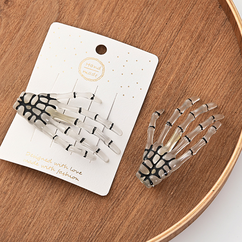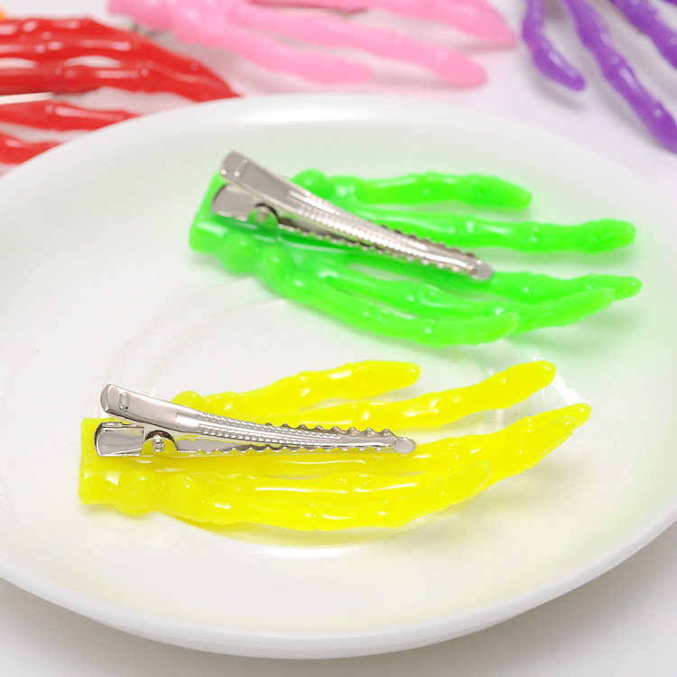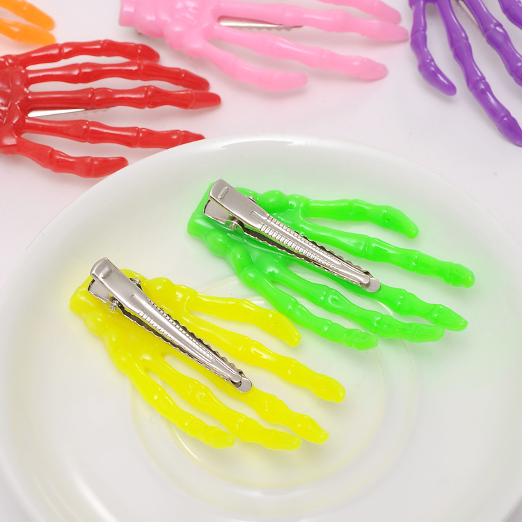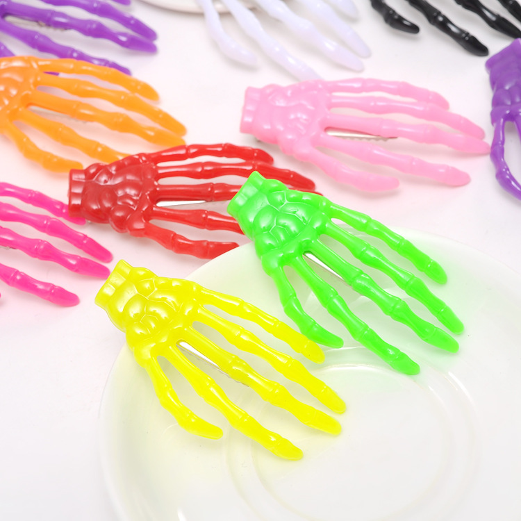 产品名称: 骷髅手骨发夹 产品货号: 4250 包装方式: 散装 产品克重: 7g 产品尺寸: 手爪长度约7.2cm 宽约4cm 产品材质:手骨抓夹为材质塑料树脂的 鸭嘴夹铁材质非非的需要的可以联系客服 装箱数量: 外箱尺寸: 批发说明: 不分左右手 |