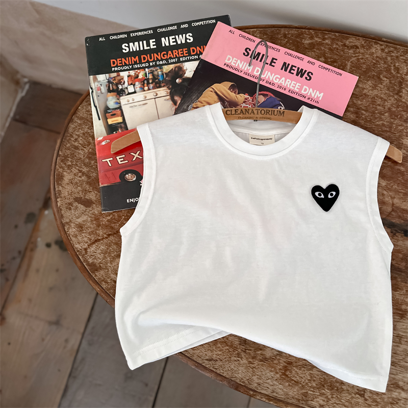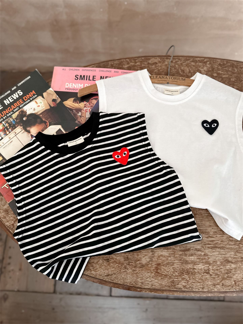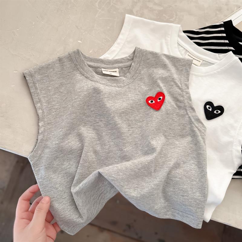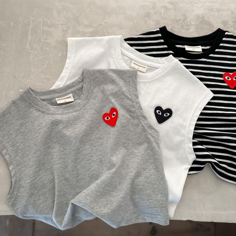 어린이 조끼 2024 여름 새로운 소년과 소녀 패션 브랜드 사랑 민소매 티셔츠 아기 솔리드 컬러 스트라이프 T