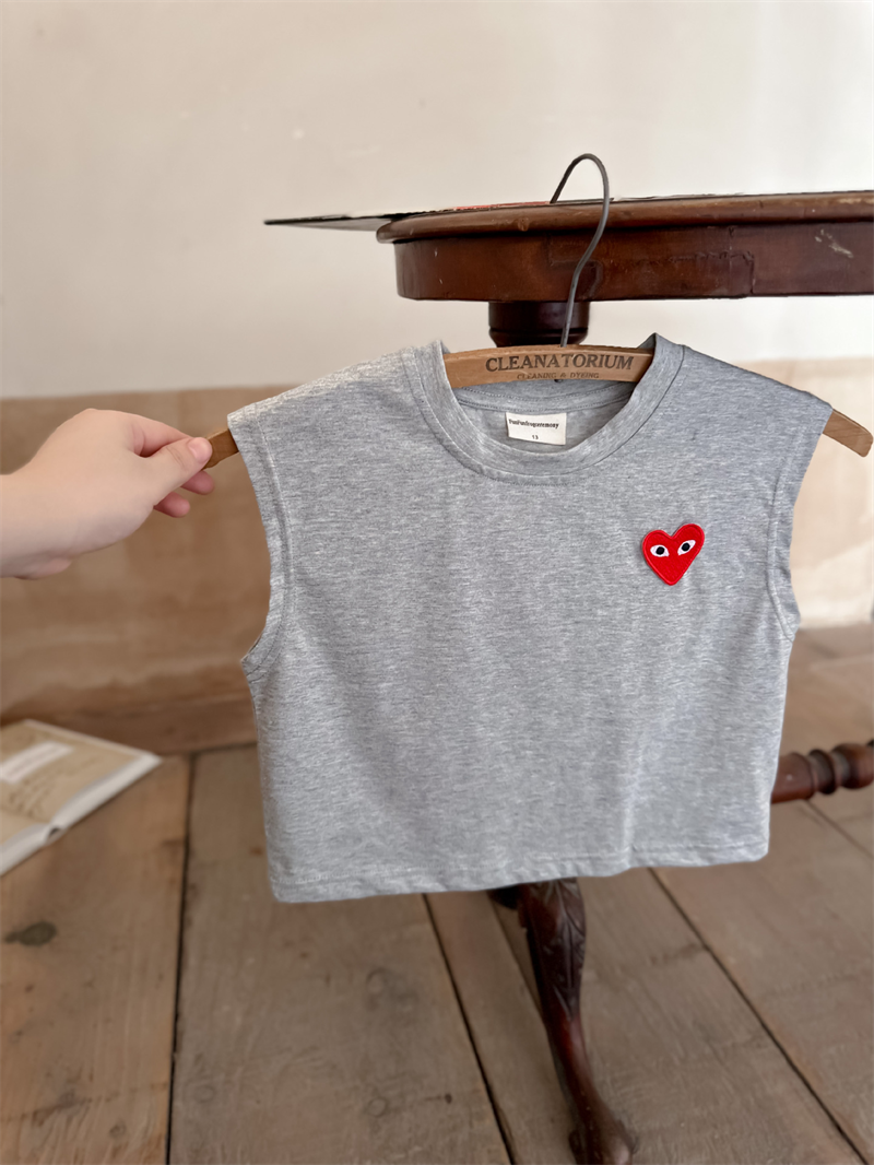 어린이 조끼 2024 여름 새로운 소년과 소녀 패션 브랜드 사랑 민소매 티셔츠 아기 솔리드 컬러 스트라이프 T스토어 가기