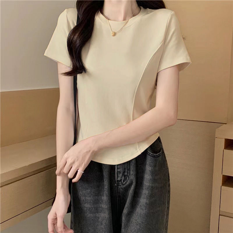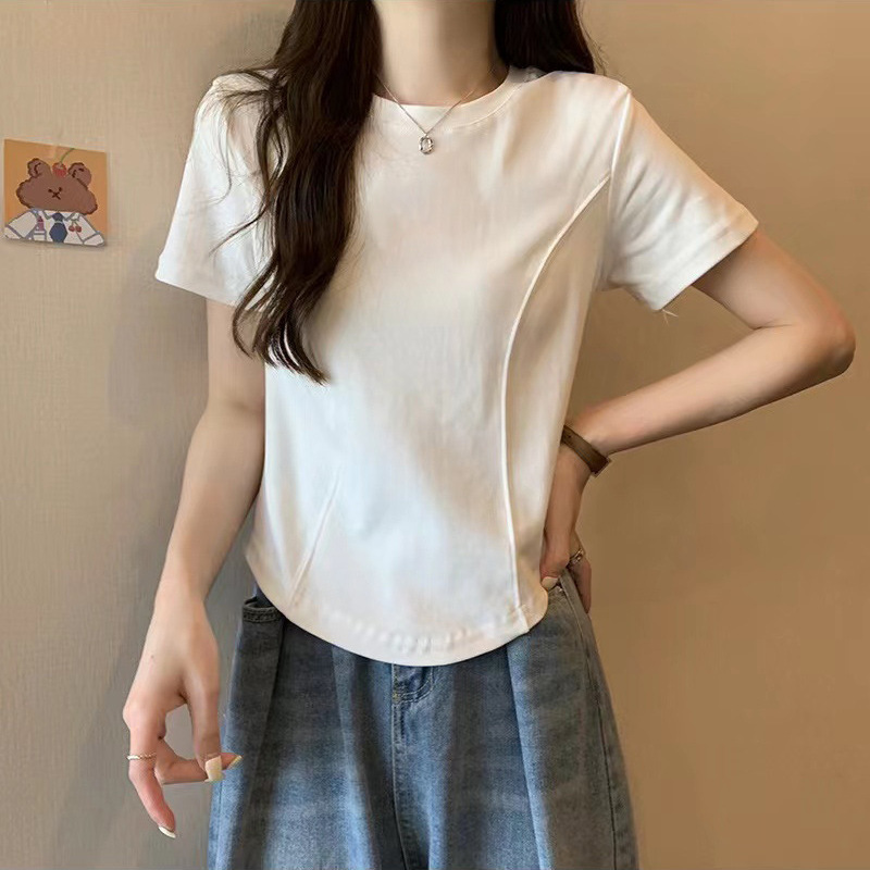 어깨 화이트 코튼 반팔 셔츠 여성 여름 짧은 스파이스 소녀 슬림 허리 피쉬 본 탑