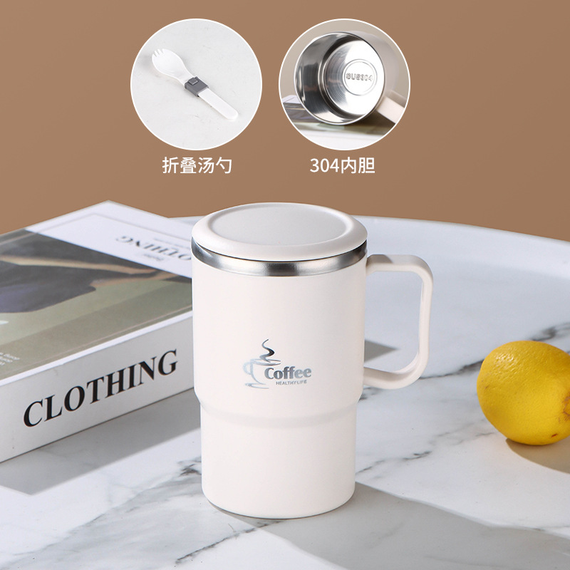 커피 컵 스테인레스 스틸 숟가락 높은 색상 값 절연 컵 대용량 짚 머그잔 컵 선물 로고스토어 가기
