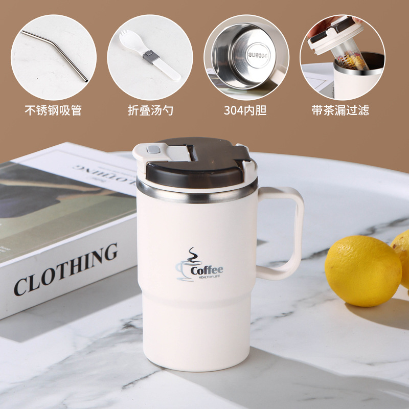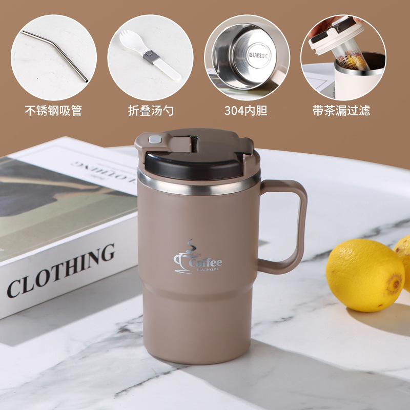 커피 컵 스테인레스 스틸 숟가락 높은 색상 값 절연 컵 대용량 짚 머그잔 컵 선물 로고