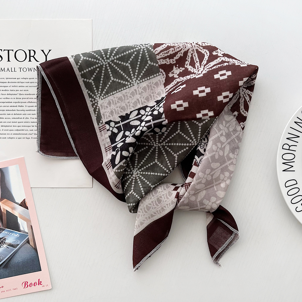 봄과 여름 프랑스 스타일 빈티지 코튼과 리넨 작은 스퀘어 스카프 올매치 넥 보호 작은 스카프 얇은 실크 스카프 다기능 헤어 밴드스토어 가기