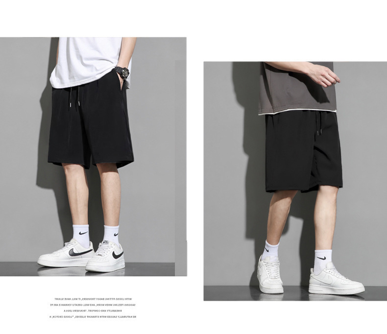 얼음 실크 속건 반바지 남자 여름 새로운 느슨한 얇은 여름 스포츠 캐주얼 중간 바지 소년 5부 바지
