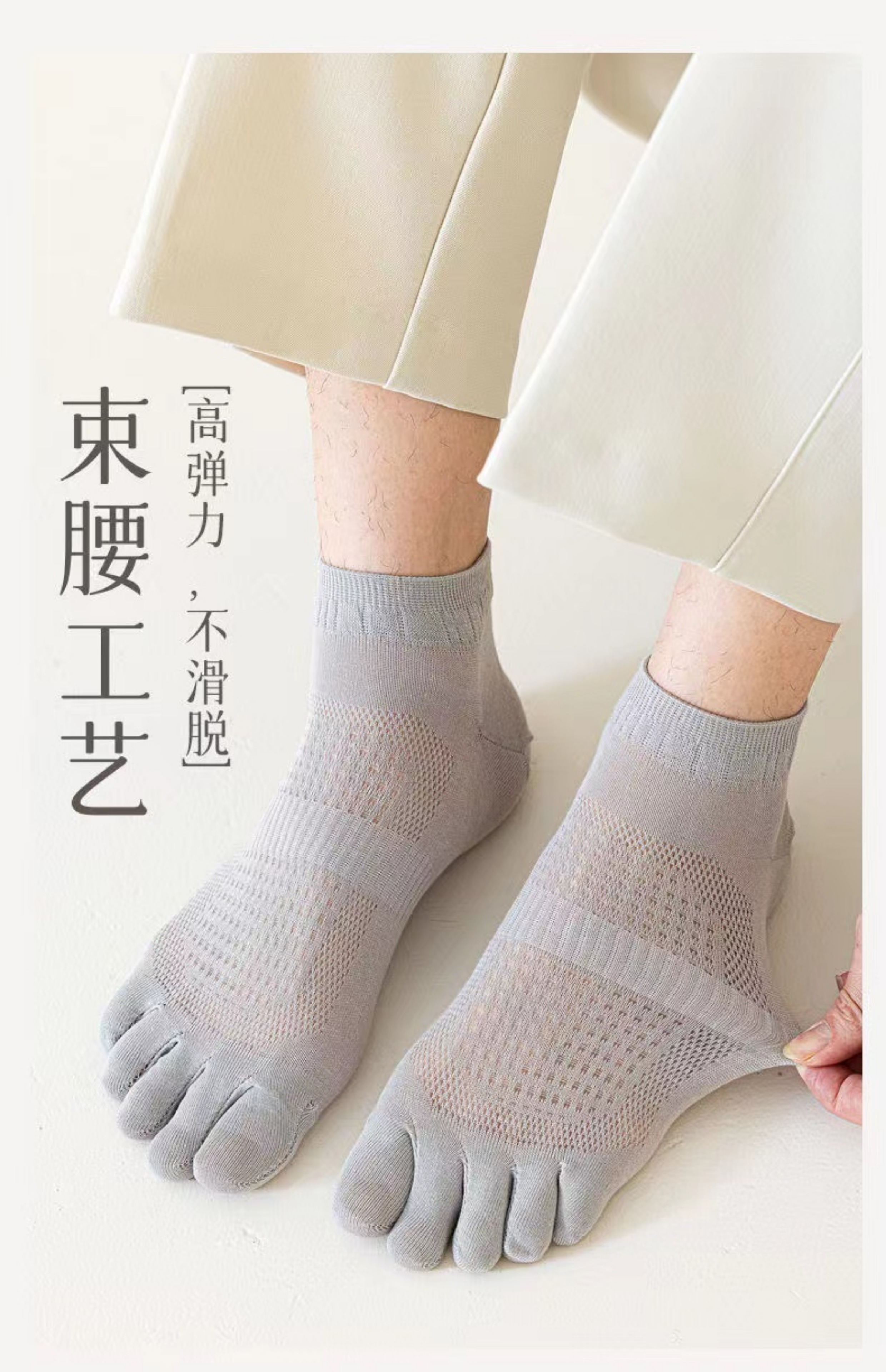 항균 다섯 손가락 양말 남성 여름 초박형 메쉬 다섯 발가락 양말 땀 흡수 탈취제 통기성 뼈없는 발가락 양말
