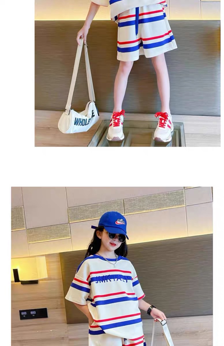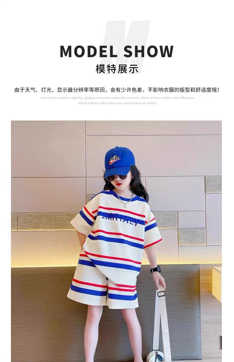여자 여름 세트 2024 새로운 한국 스타일 서양식 어린이 여름 큰 소녀의 인터넷 인기 유행 어린이 의류 투피스 세트스토어 가기