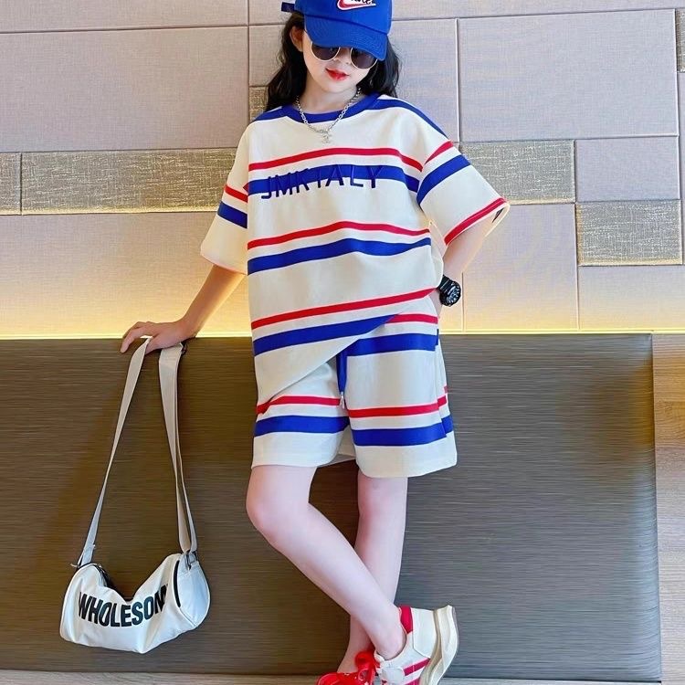 여자 여름 세트 2024 새로운 한국 스타일 서양식 어린이 여름 큰 소녀의 인터넷 인기 유행 어린이 의류 투피스 세트