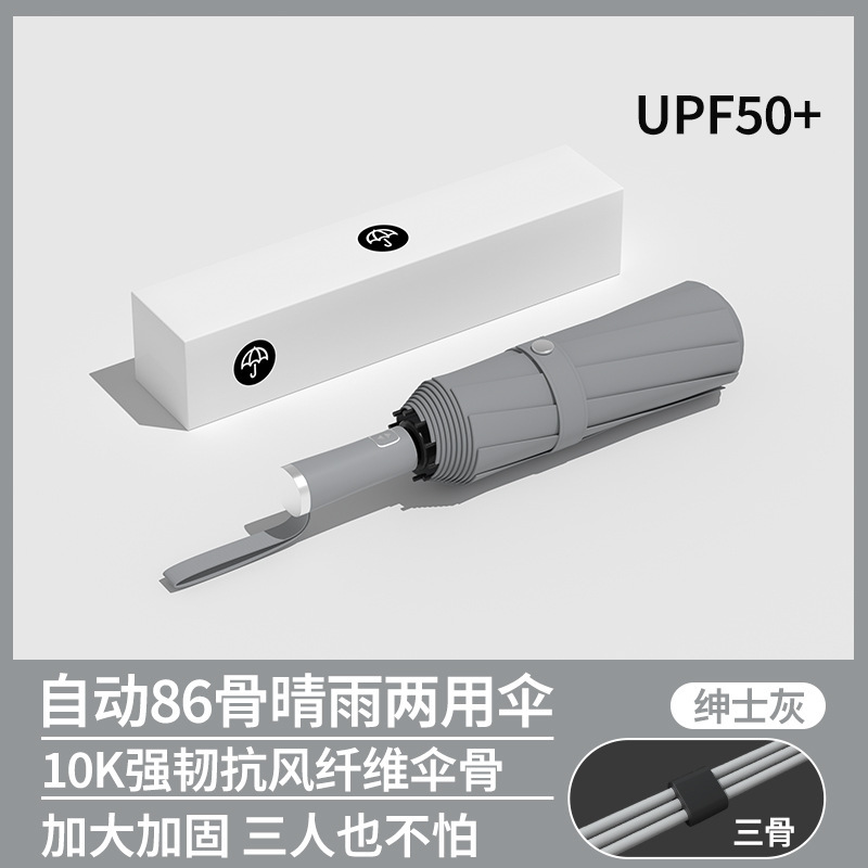• 완전 자동 [유리 섬유 방풍 우산 갈비 86개 + 초대형 직경 126CM★비가 오나 눈이 오나] 젠틀맨 그레이