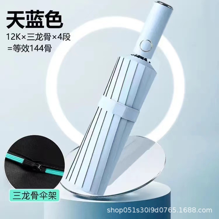 • 완전 자동 [144 유리 섬유 바람 우산 뼈★맑고 비오는 이중 사용] 스카이 블루