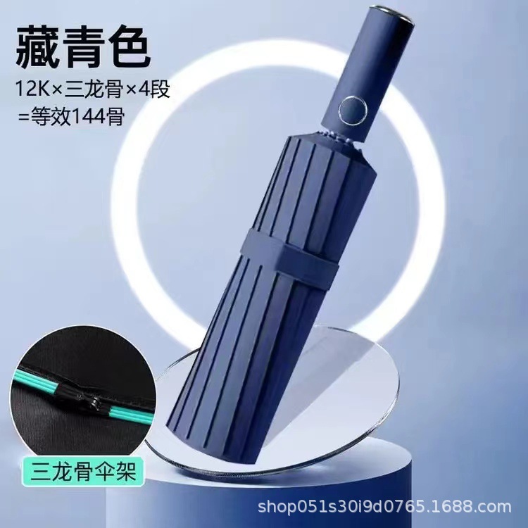 • 완전 자동 [144 유리 섬유 바람 우산 뼈★맑고 비오는 이중 사용] 네이비