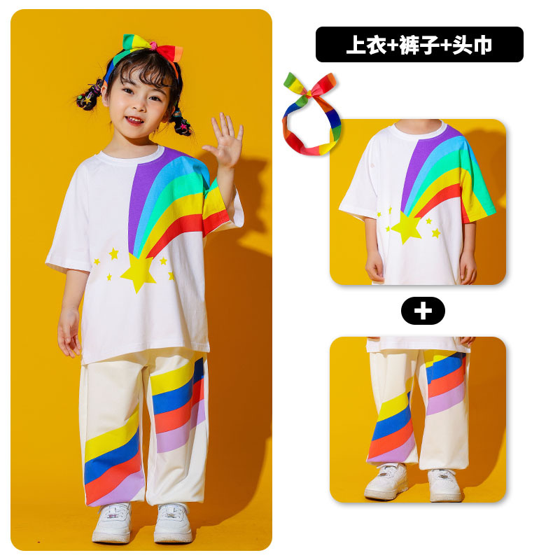 • 세트 [568D 무지개 짧은 소매 500D 무지개 바지] 무지개 머리 밴드