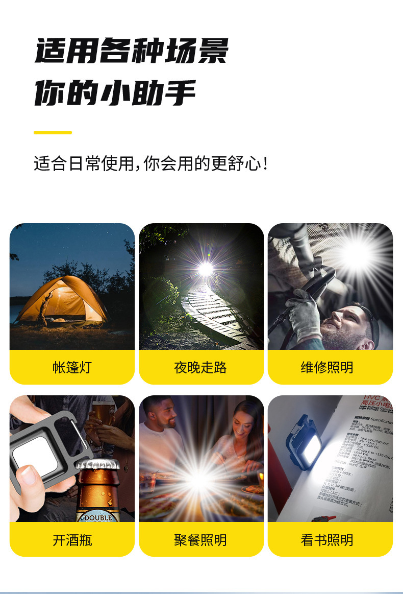 국경 led 다기능 키 체인 라이트 슈퍼 라이트 작업 미니 라이트 야외 캠핑 COB 비상 조명 야간 조명