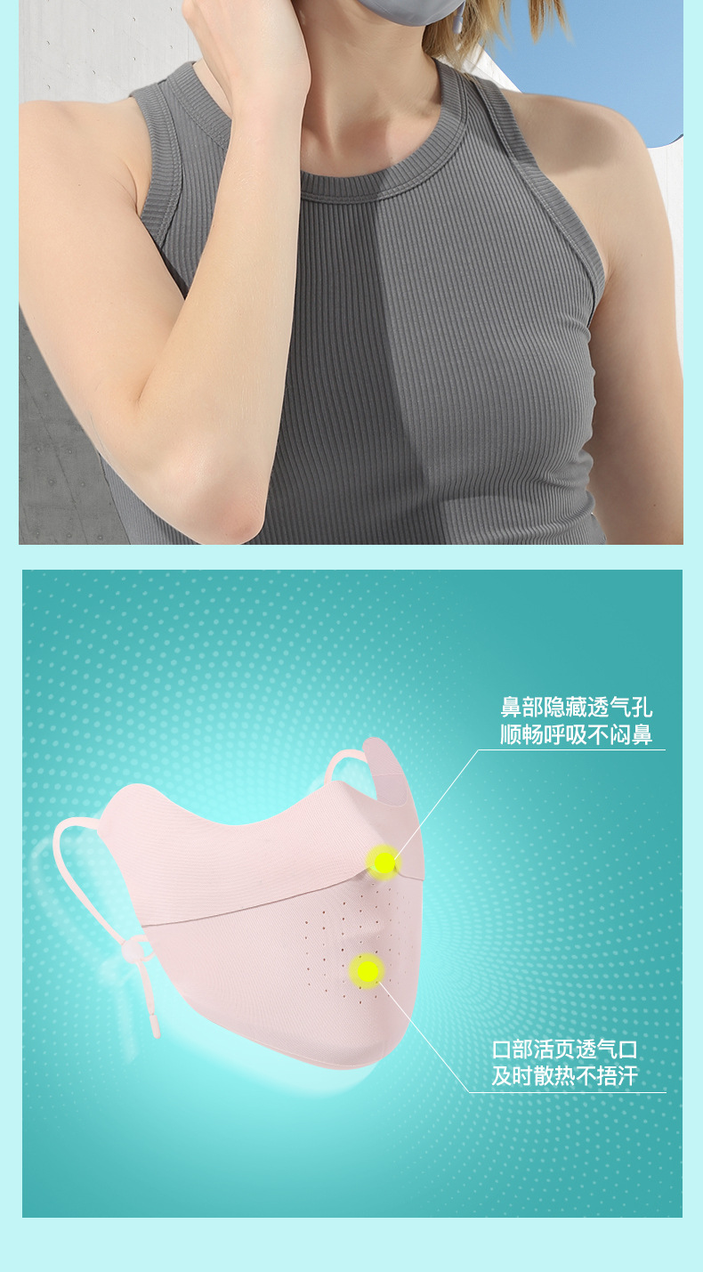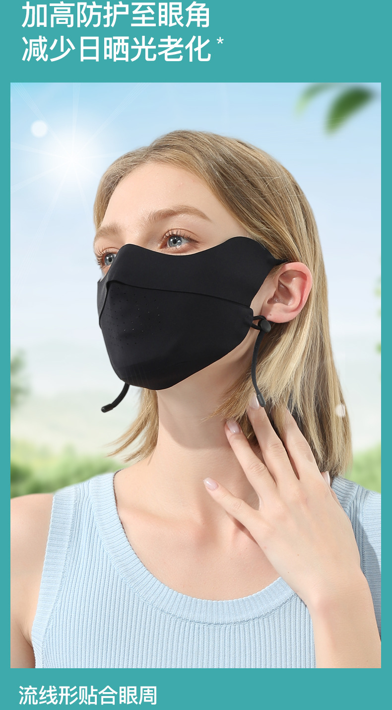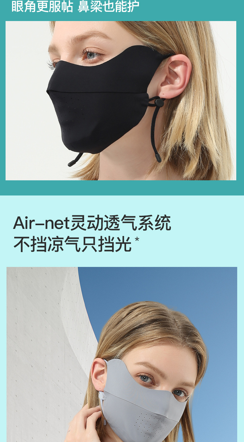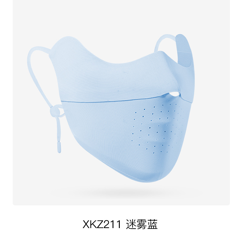 XKZ212为锦纶材质无痕工艺,品牌同款防晒面罩,三角结构耳带设计,佩戴更贴合稳定