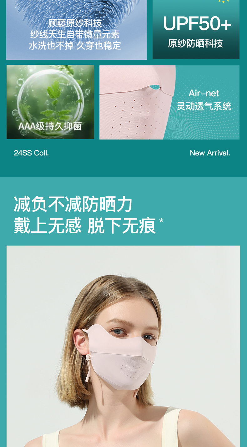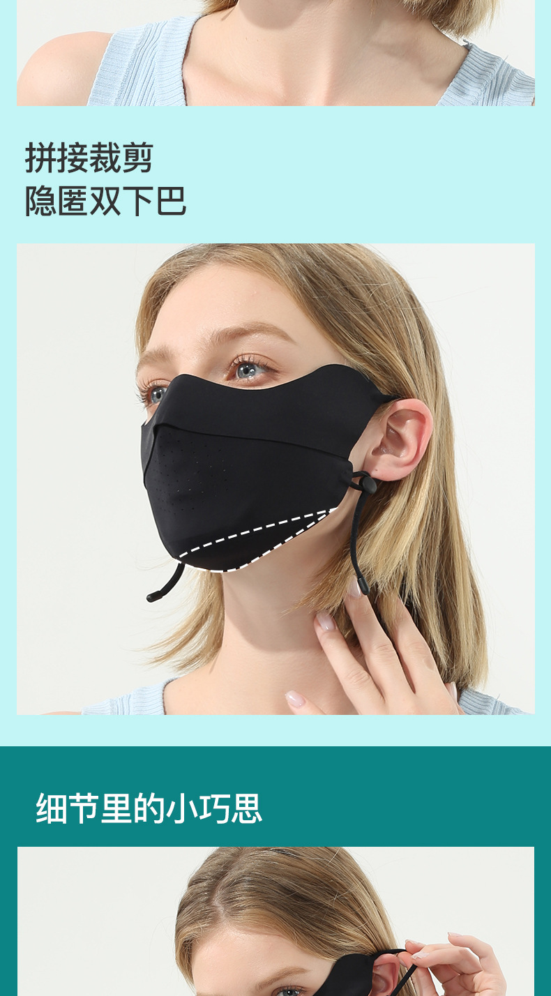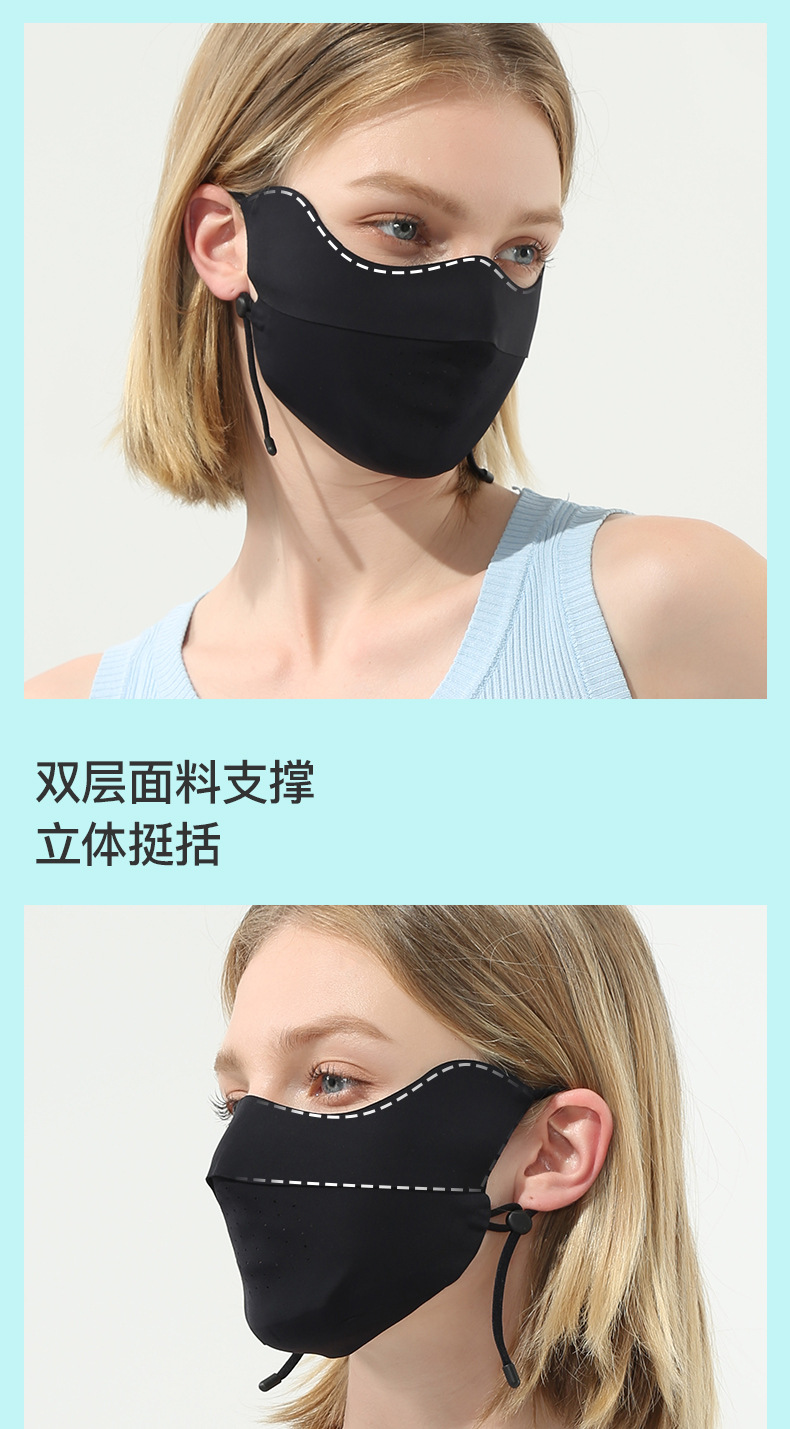 XKZ212为锦纶材质无痕工艺,品牌同款防晒面罩,三角结构耳带设计,佩戴更贴合稳定