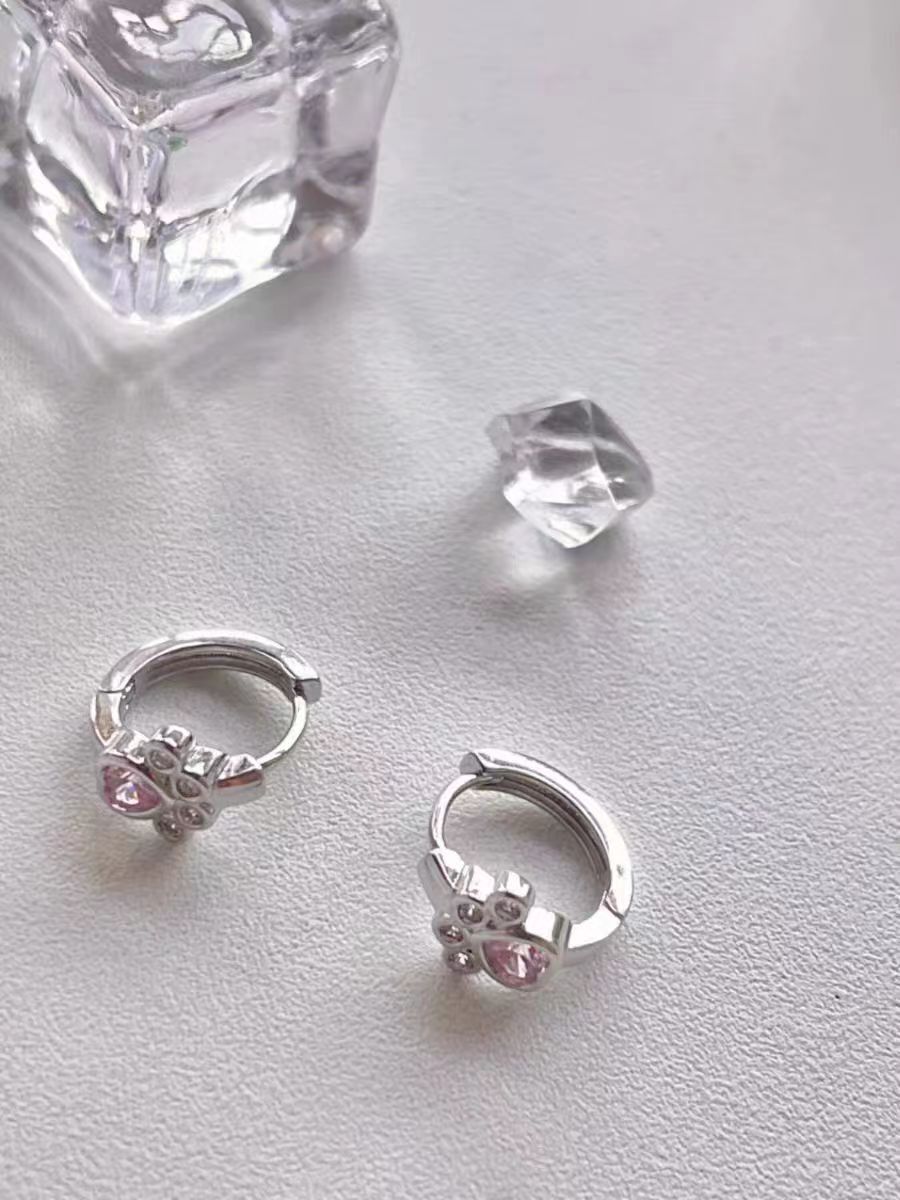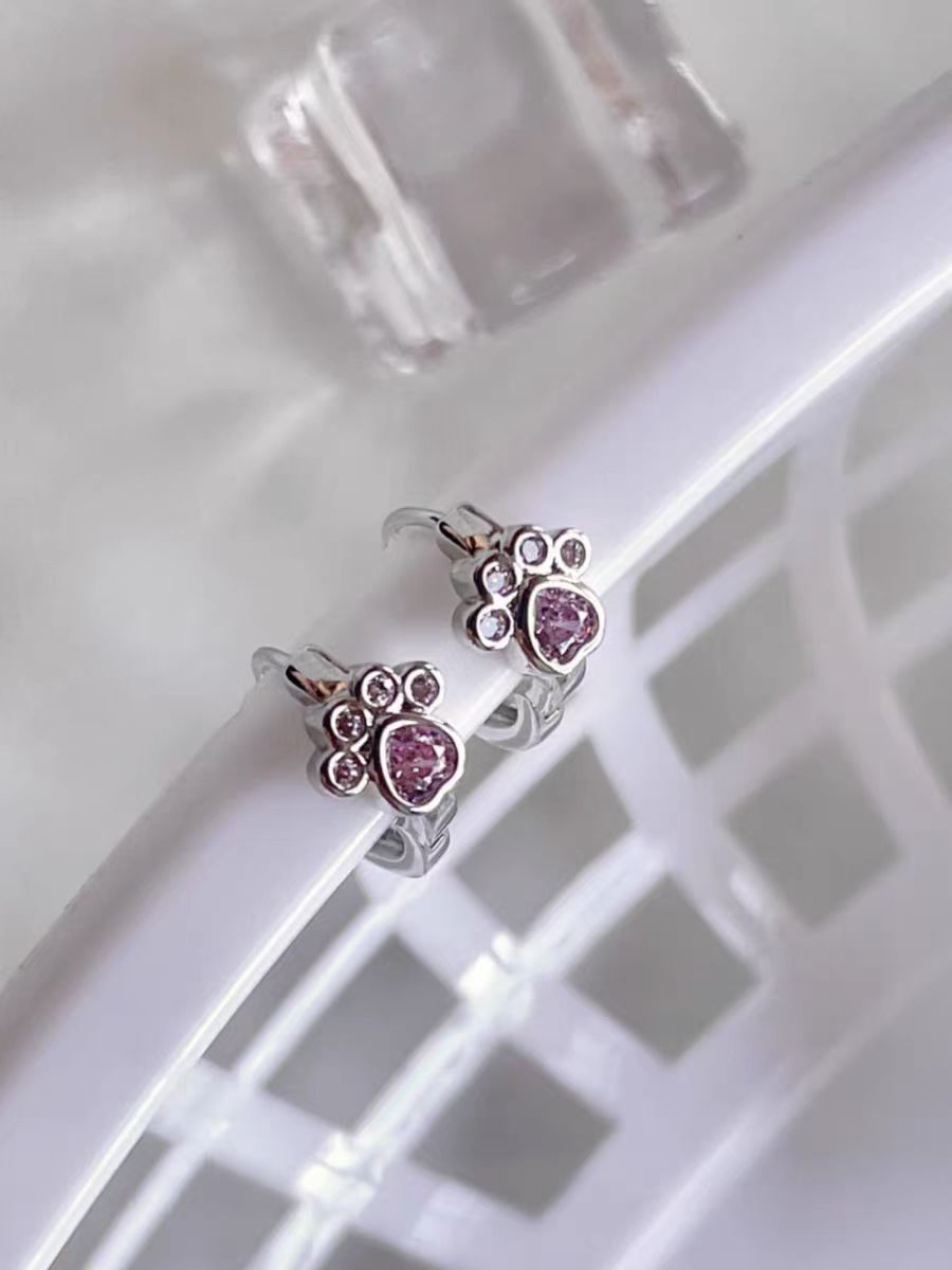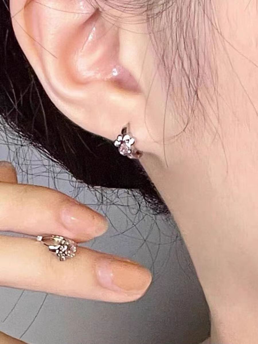 간단한 패션 라이트 럭셔리 핑크 고양이 발 귀 반지 귀여운 다이아몬드 귀 버클 여성 틈새 디자인 센스 고양이 귀걸이 귀걸이스토어 가기