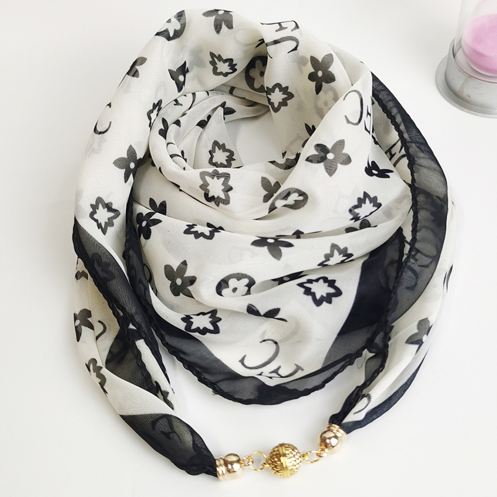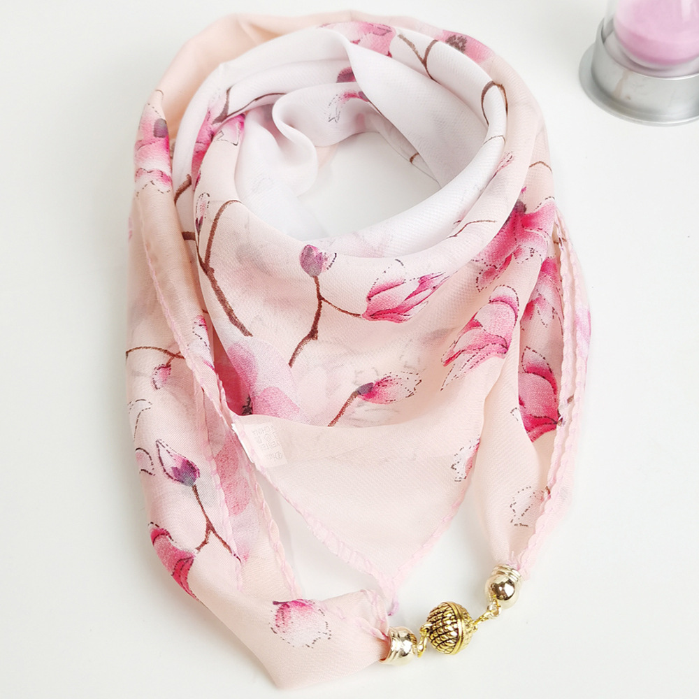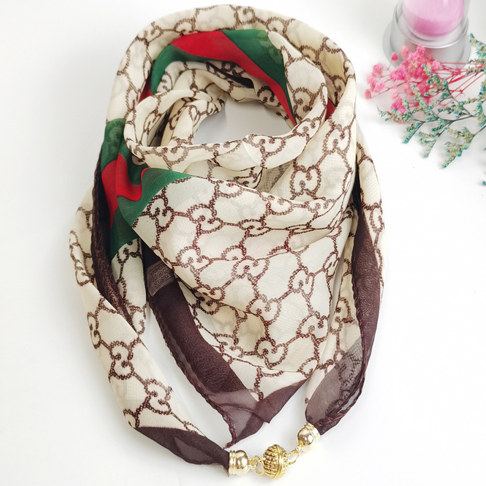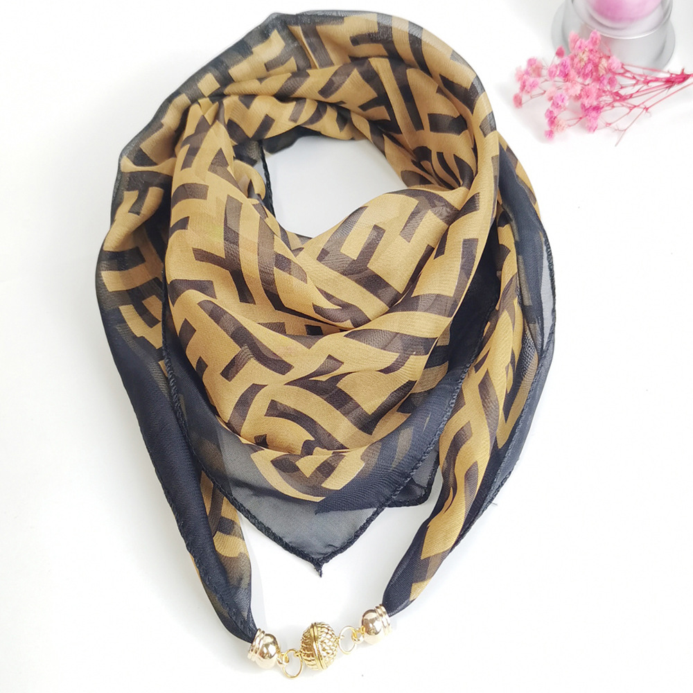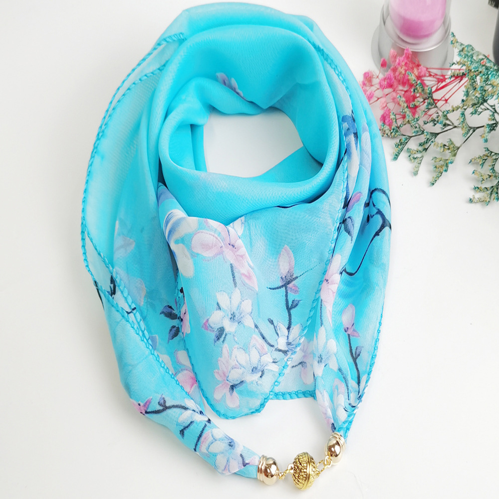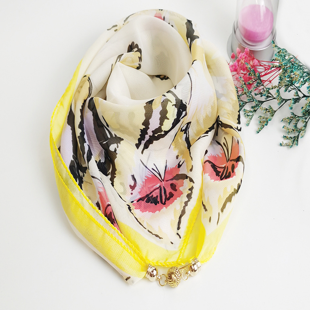 여름 자기 버클 실크 스카프 목 보호 황금 볼 스카프 스카프 요정 쉬폰 새로운 선 스크린 웨스턴 스타일 스퀘어 펜던트