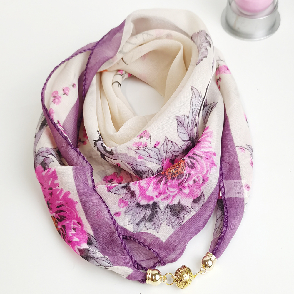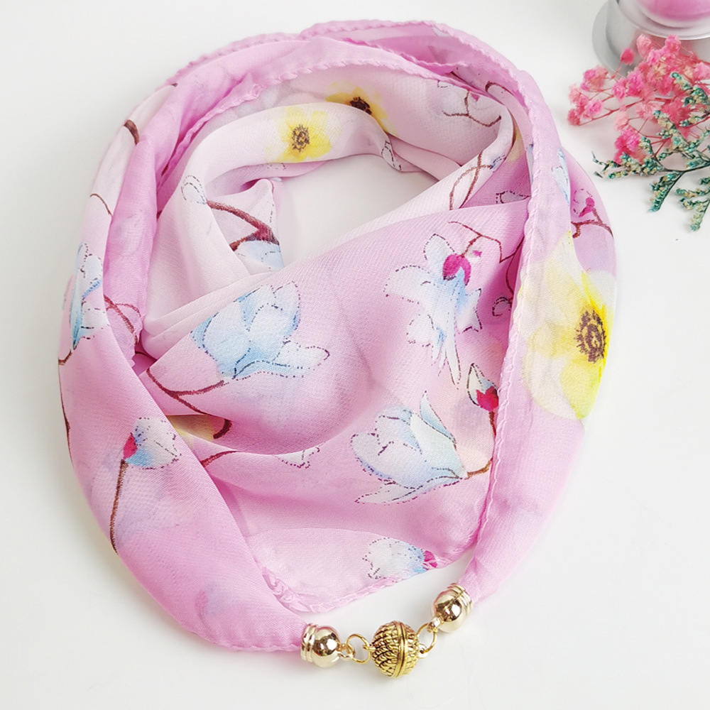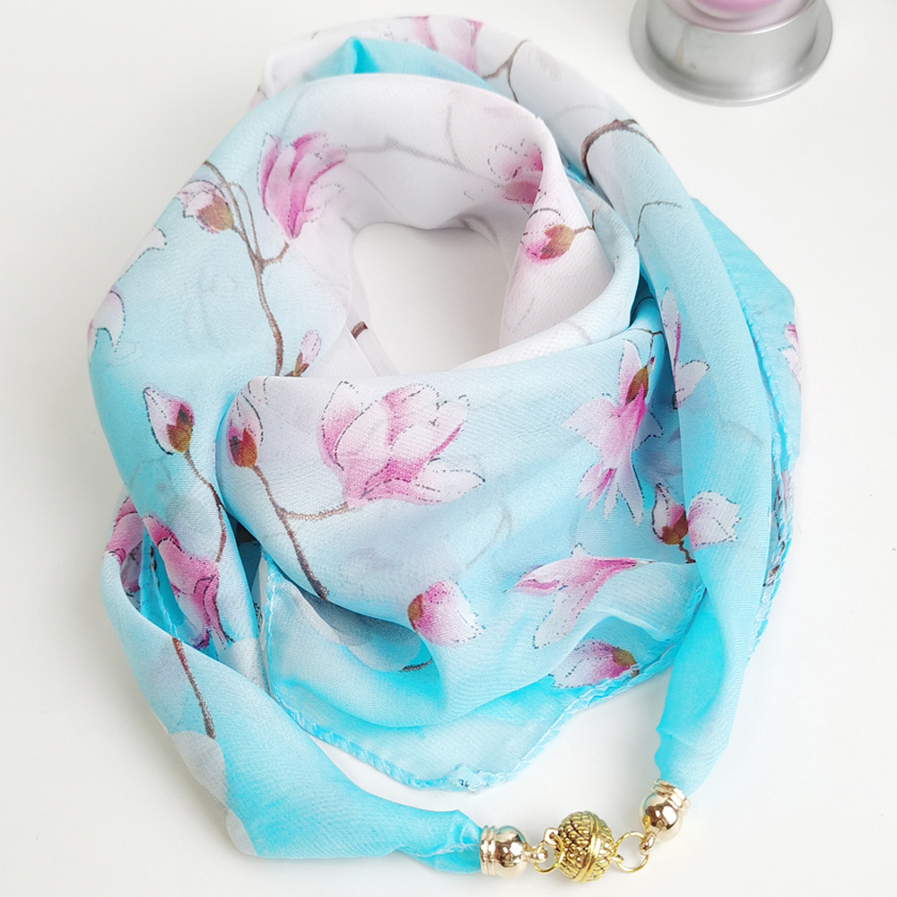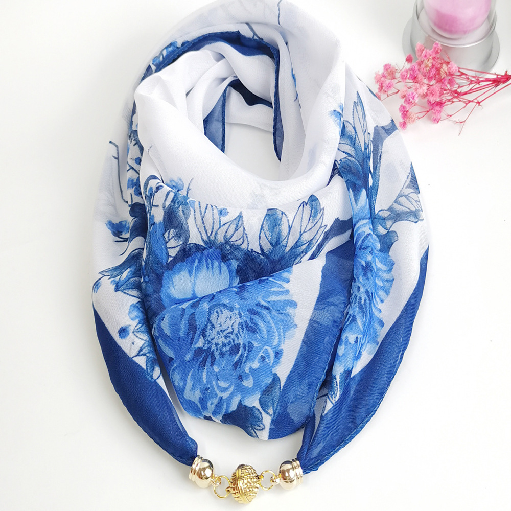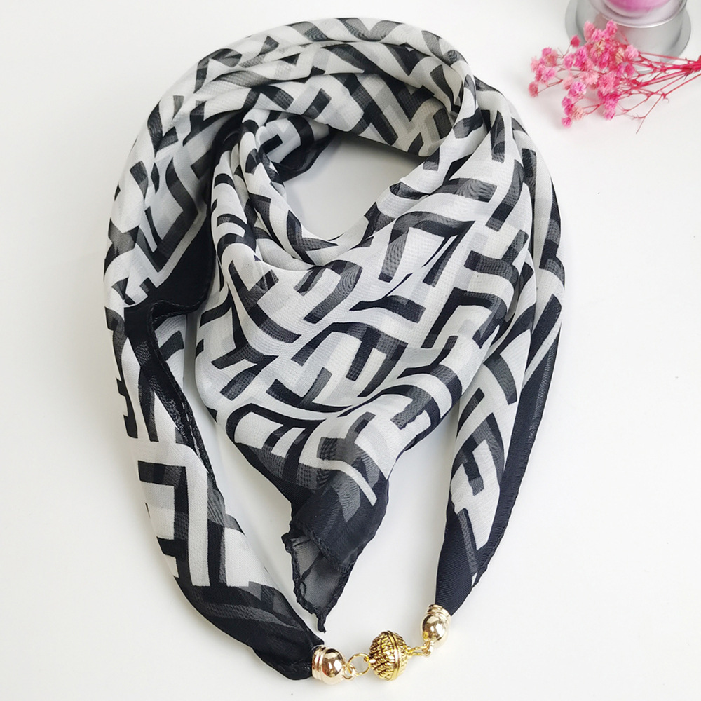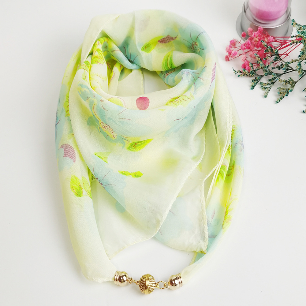 여름 자기 버클 실크 스카프 목 보호 황금 볼 스카프 스카프 요정 쉬폰 새로운 선 스크린 웨스턴 스타일 스퀘어 펜던트