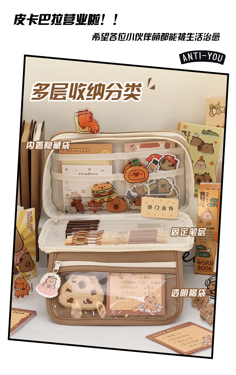 • 9 층 연필 케이스 베이지-단일 연필 케이스 (스티커 문구 제외)