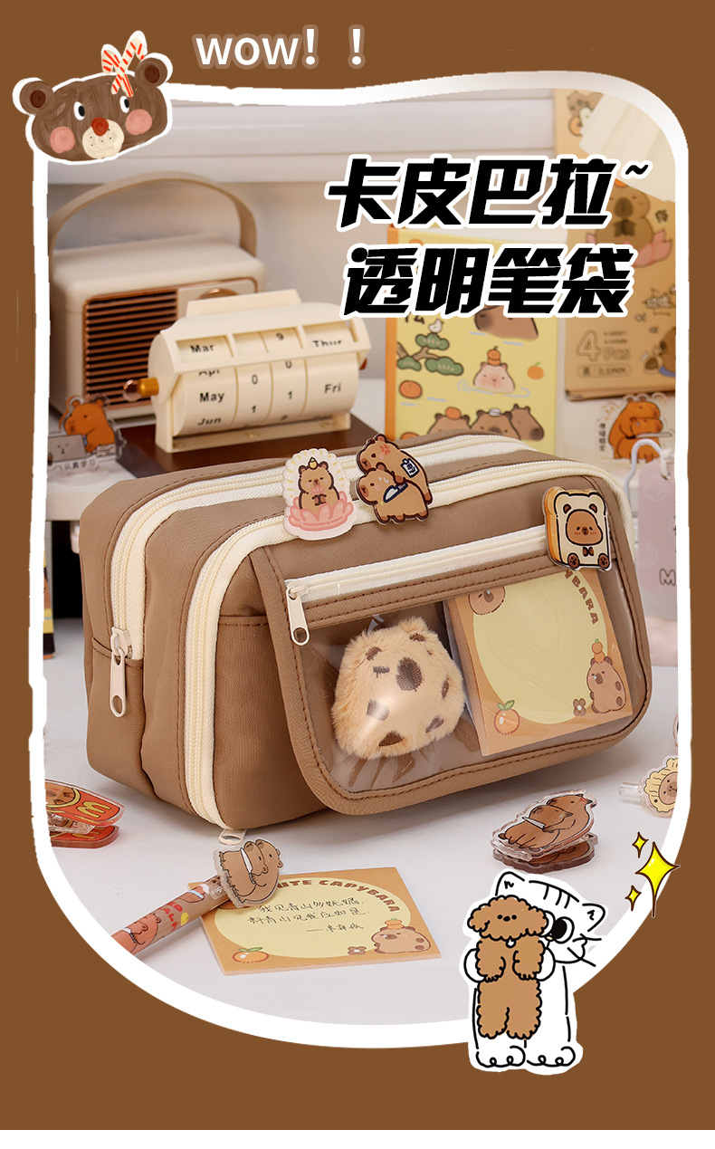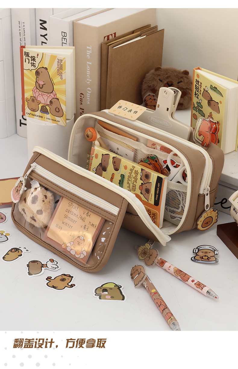 • 9 층 연필 케이스 다크 브라운-단일 연필 케이스 (스티커 문구 제외)