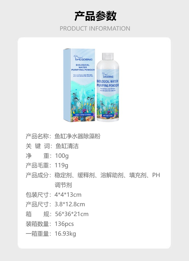YEGBONG 물고기 탱크 정수기 조류 제거 분말 청소 물고기 탱크 이끼 제거 조류 제거 수질 즉석 조류 제거 분말
