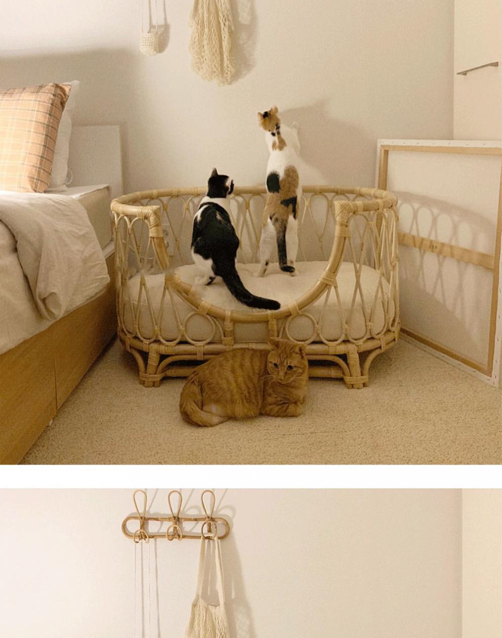 Yut 등나무 예술 애완 동물 침대 짠 개 소파 고양이 공주 침대 사진 일본 등나무 침대 고양이 둥지 개스토어 가기