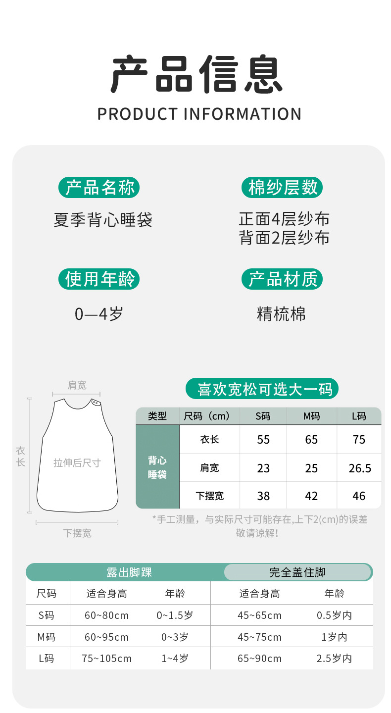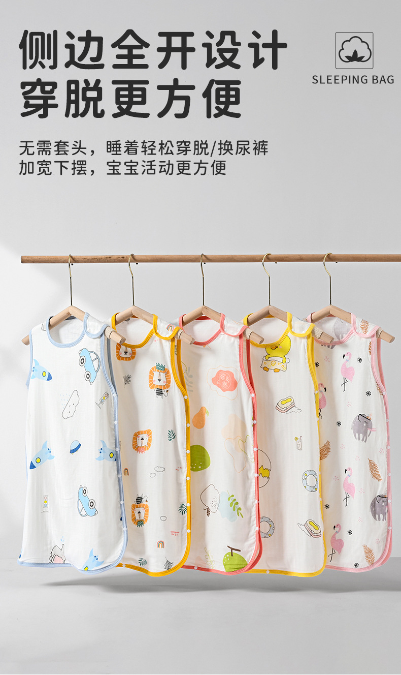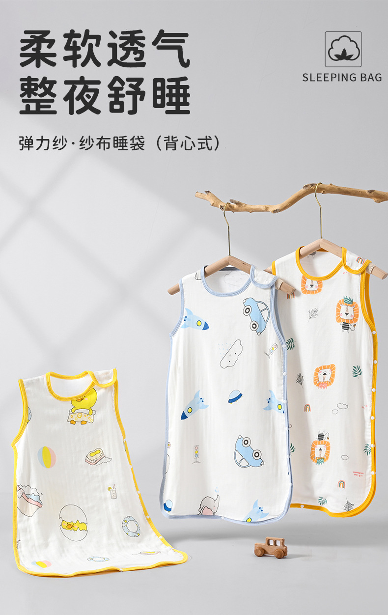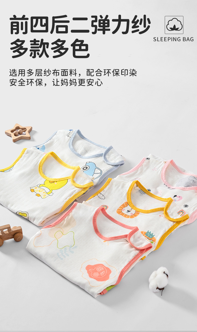 아기 슬리핑 백 여름 얇은 아기 코튼 거즈 민소매 조끼 민소매 조끼 슬리핑 옷 어린이 킥 방지 유물스토어 가기