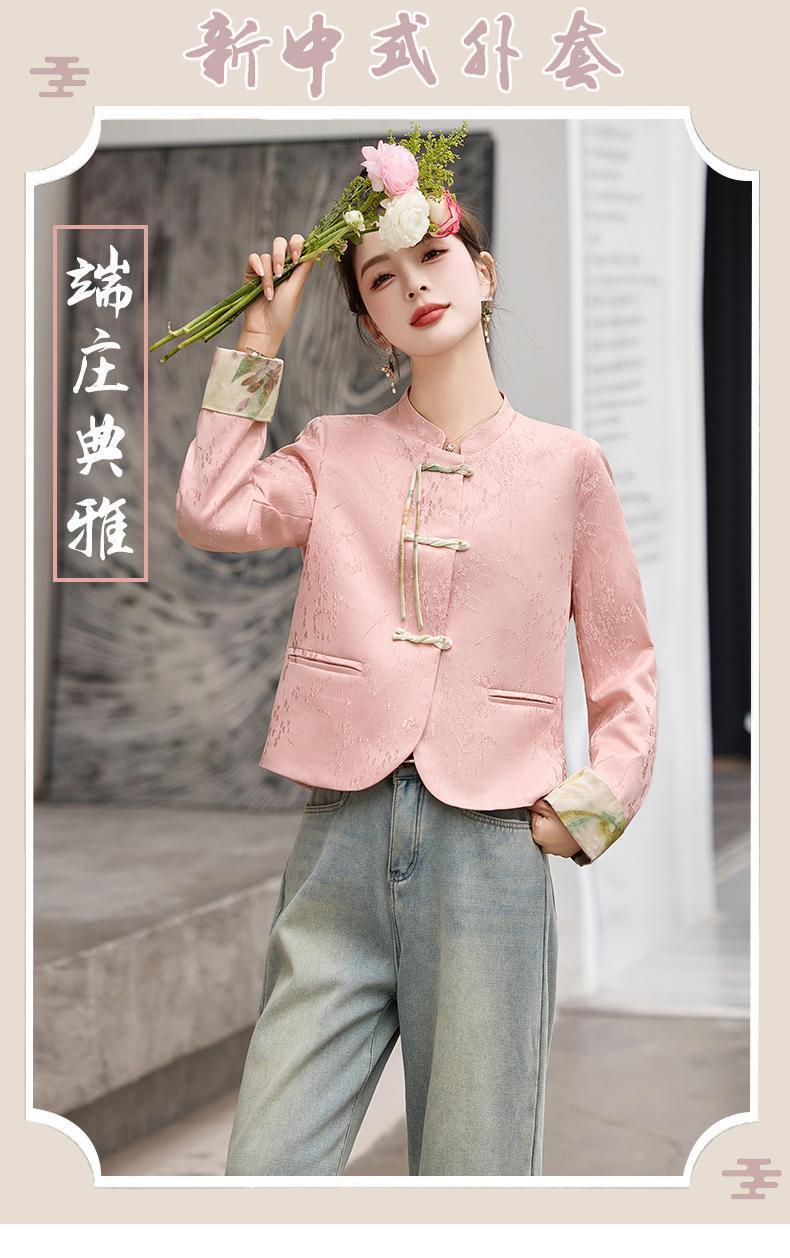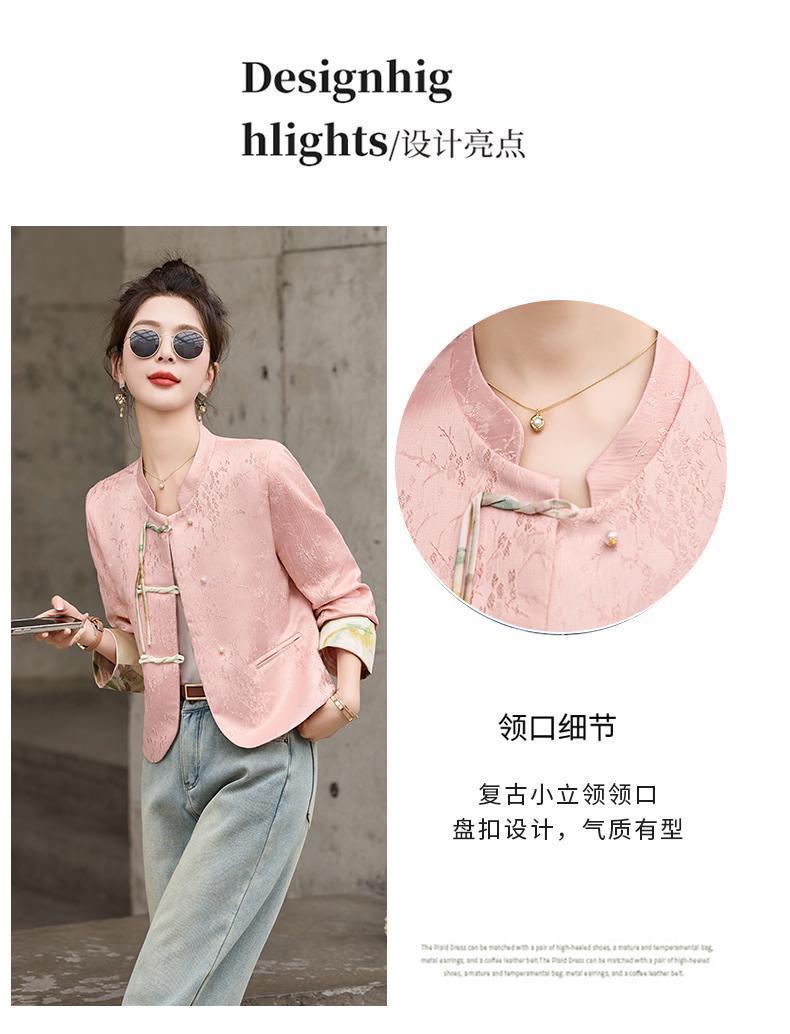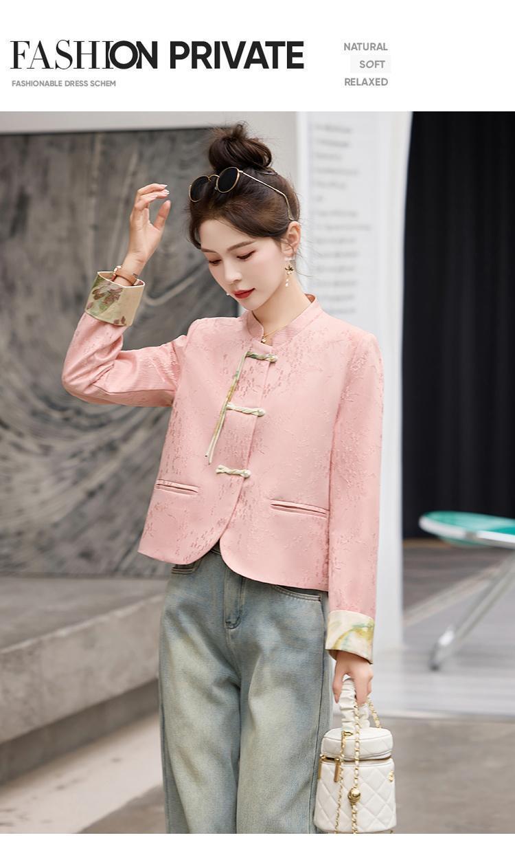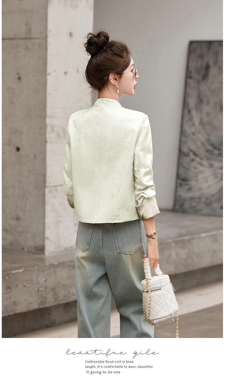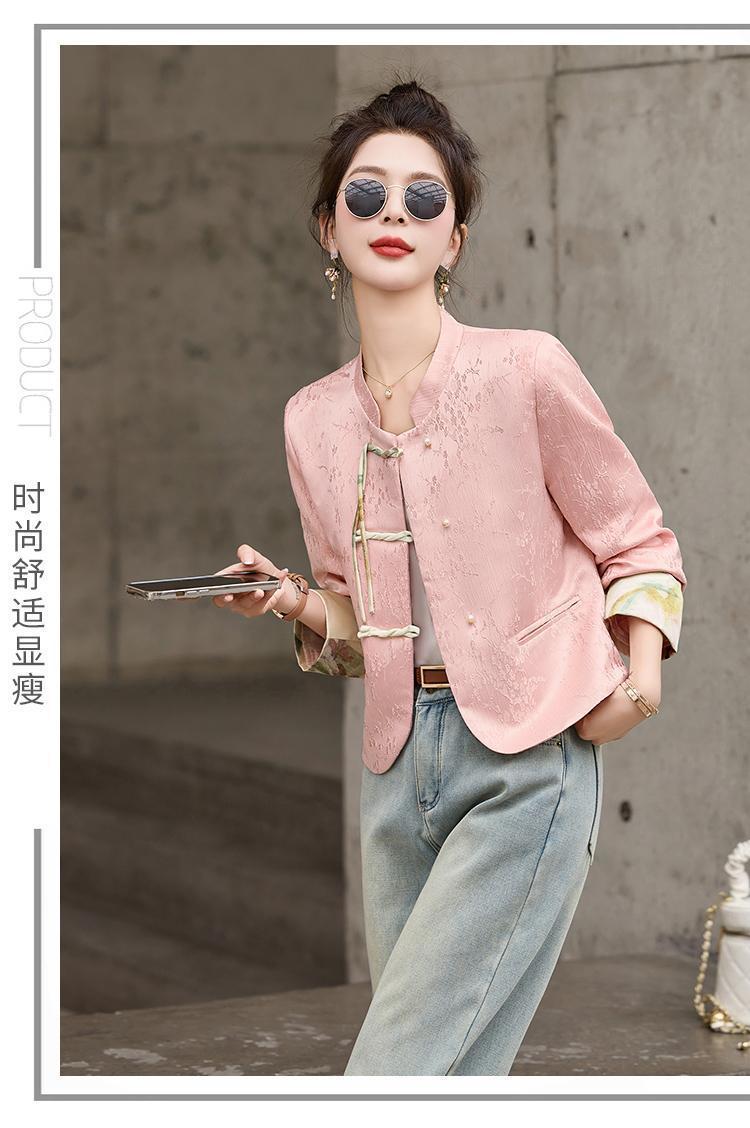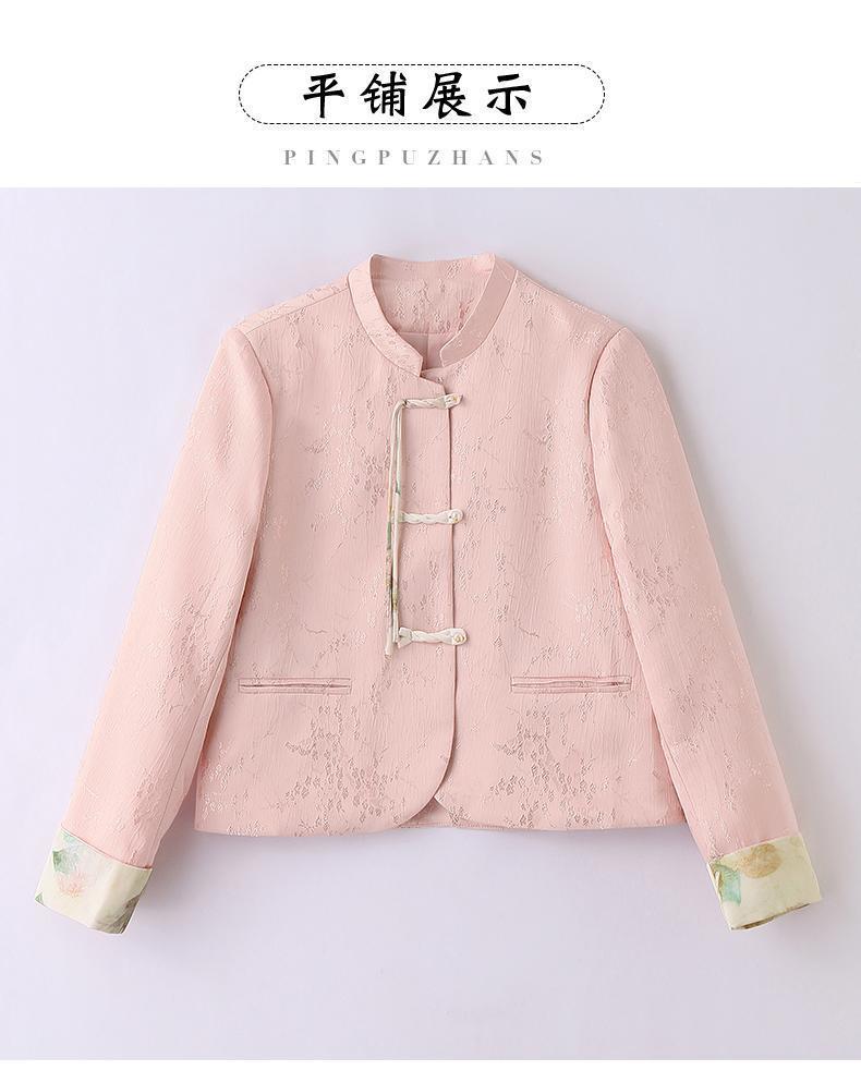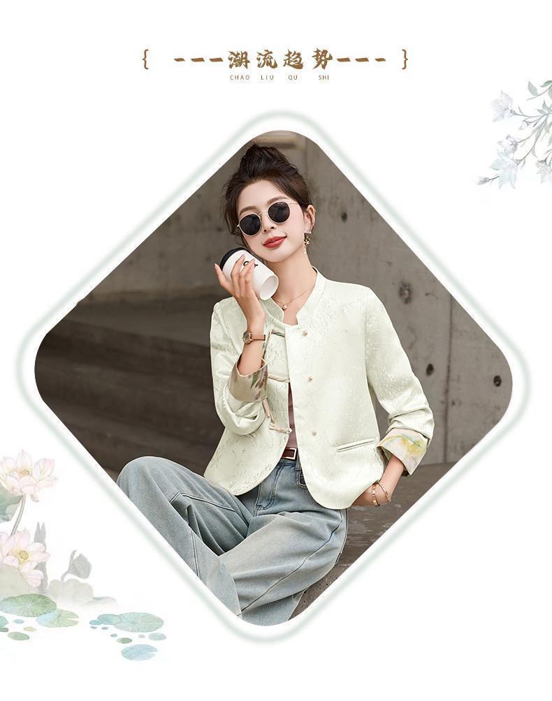 새로운 중국 스타일 국가 스타일 짧은 코트 여성의 봄 인기있는 새로운 기질 매일 착용 버튼 라운드 넥 탕 코트스토어 가기