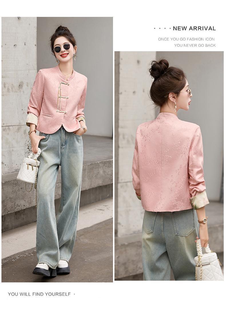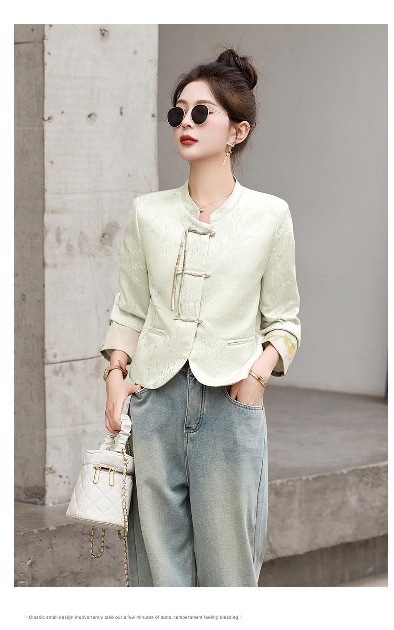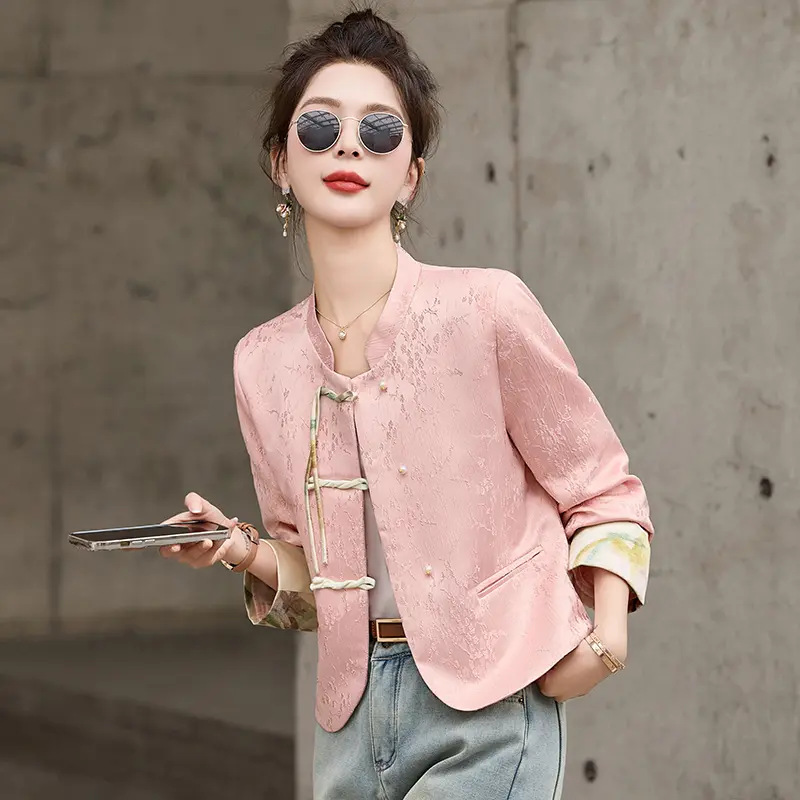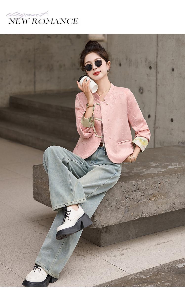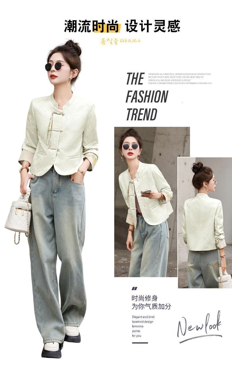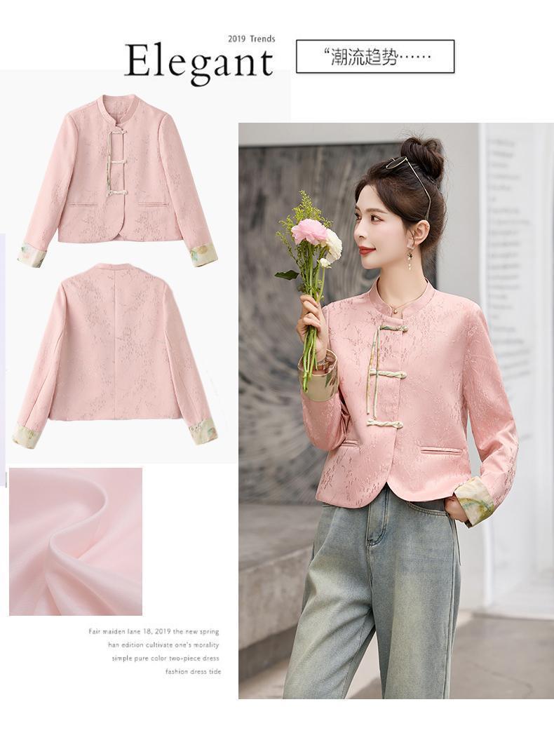 새로운 중국 스타일 국가 스타일 짧은 코트 여성의 봄 인기있는 새로운 기질 매일 착용 버튼 라운드 넥 탕 코트스토어 가기