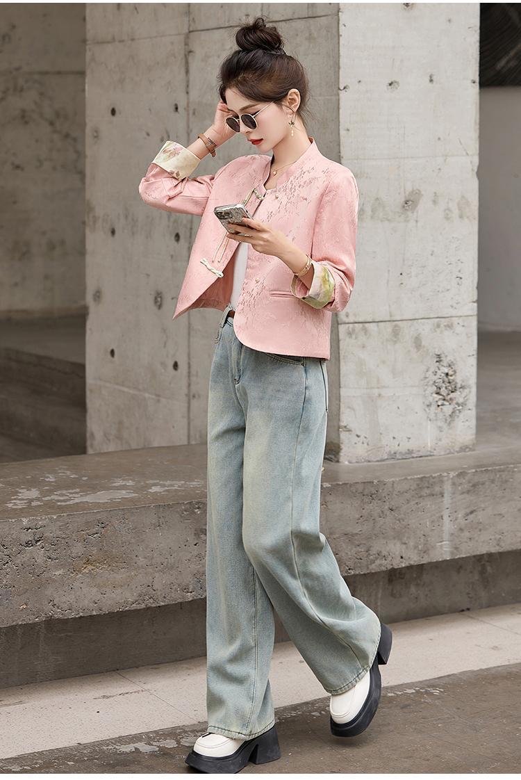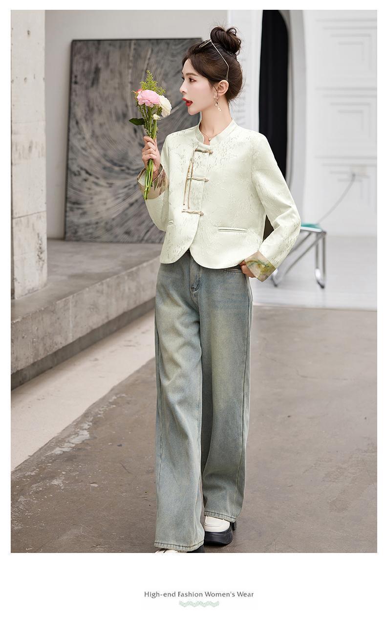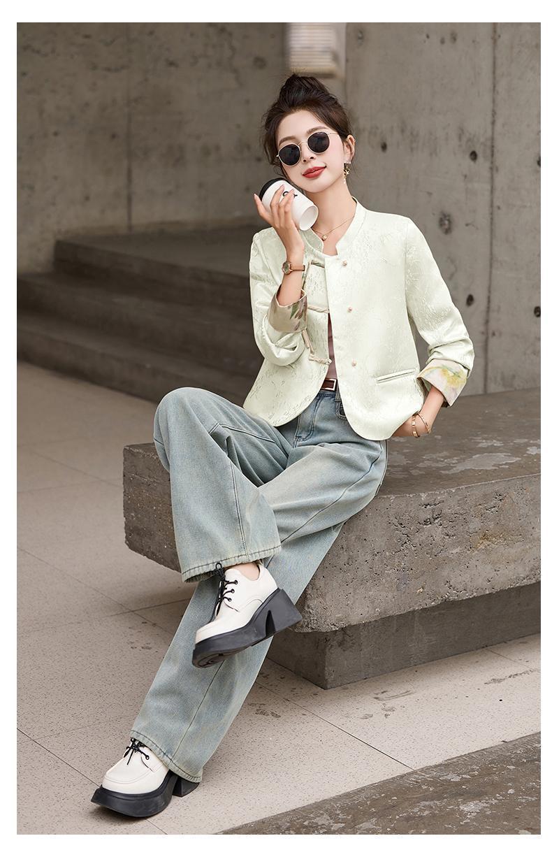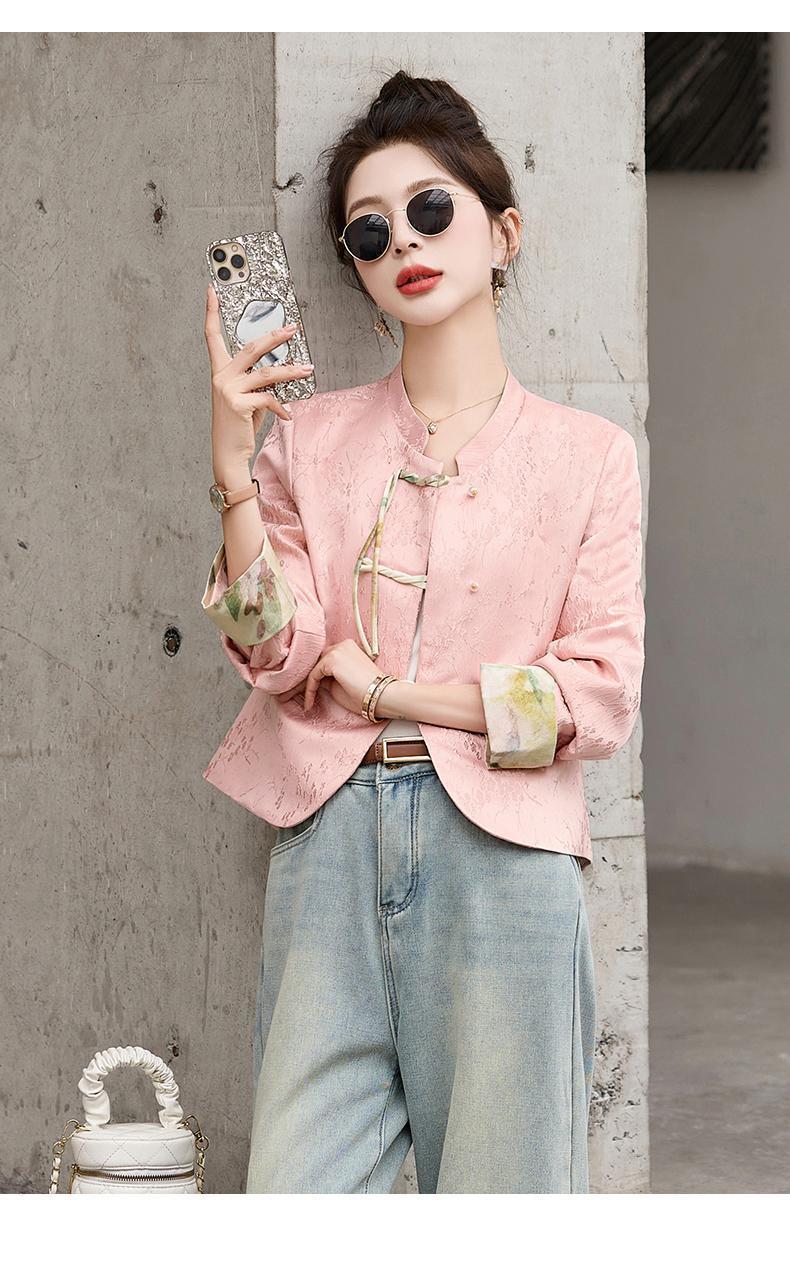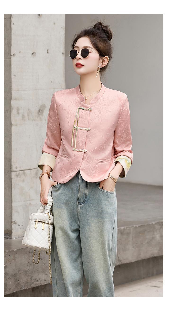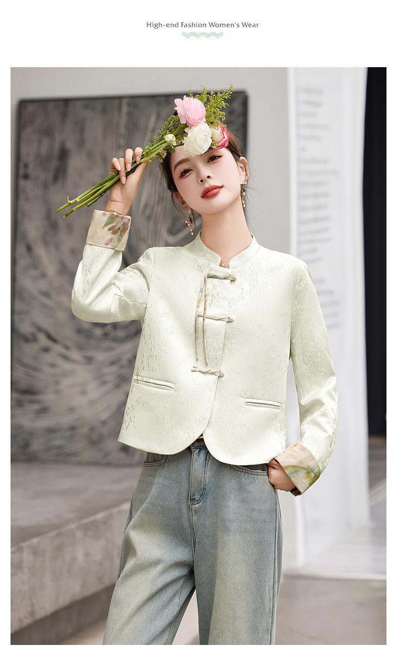 새로운 중국 스타일 국가 스타일 짧은 코트 여성의 봄 인기있는 새로운 기질 매일 착용 버튼 라운드 넥 탕 코트스토어 가기