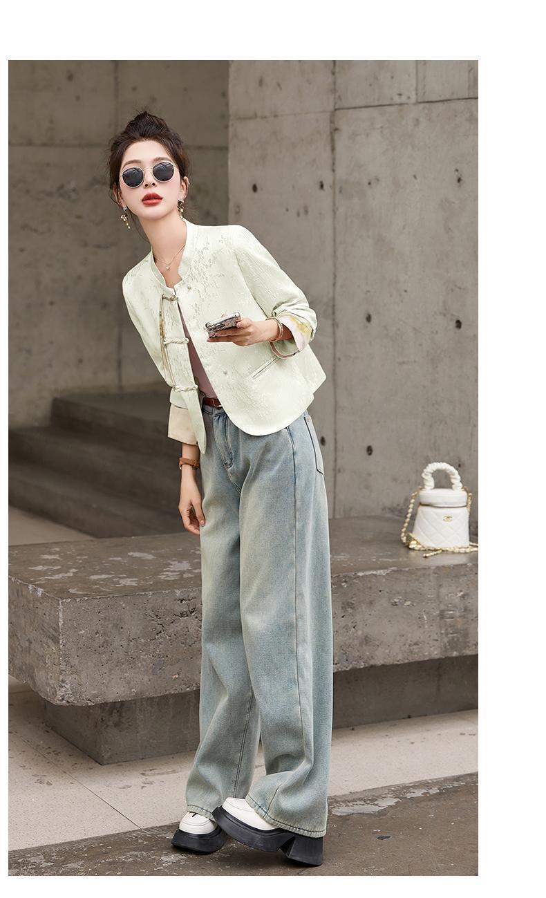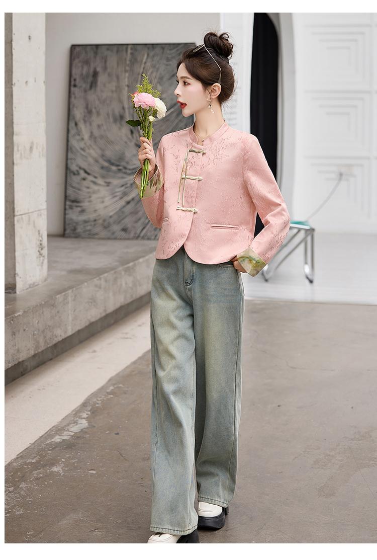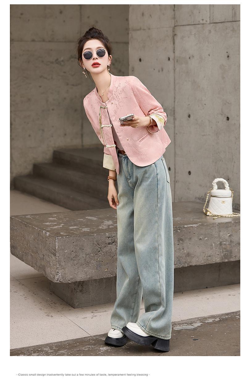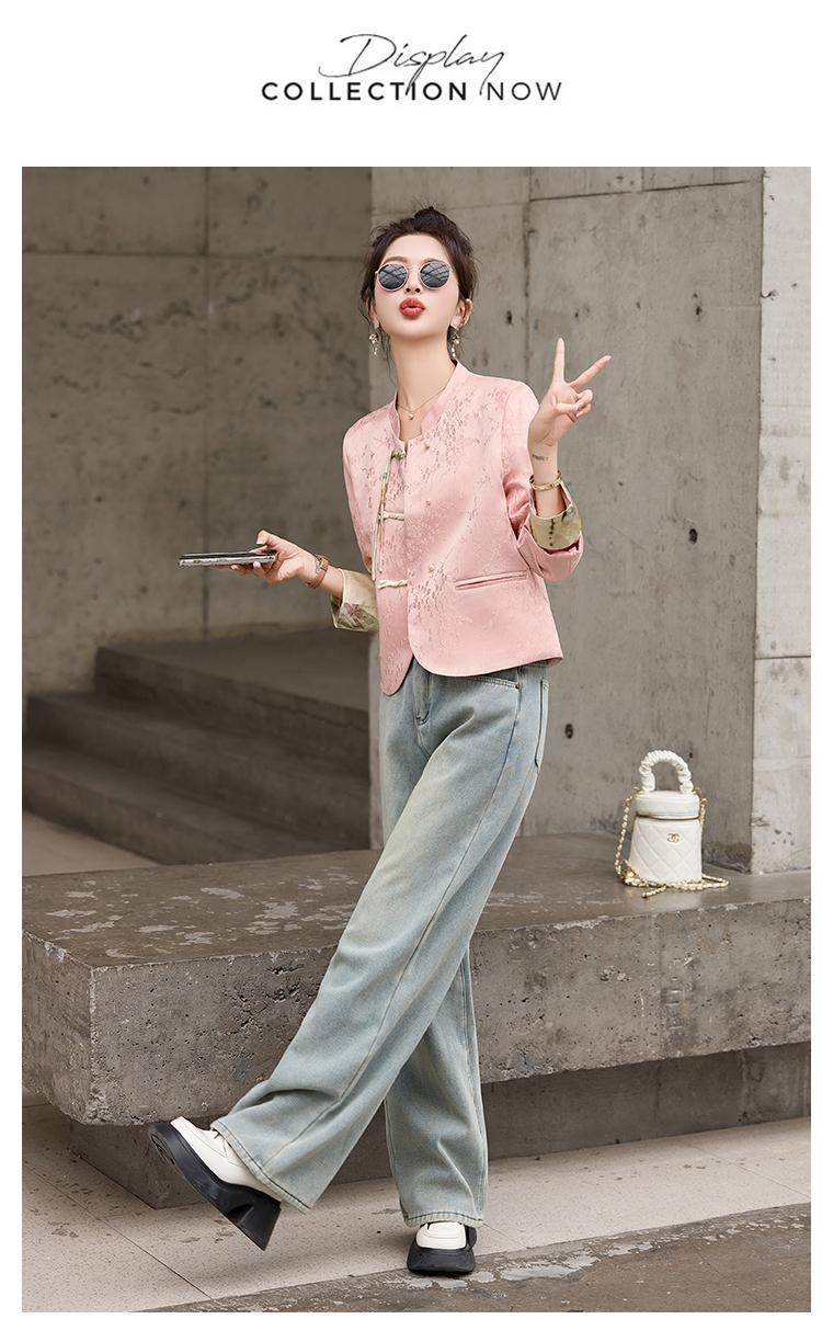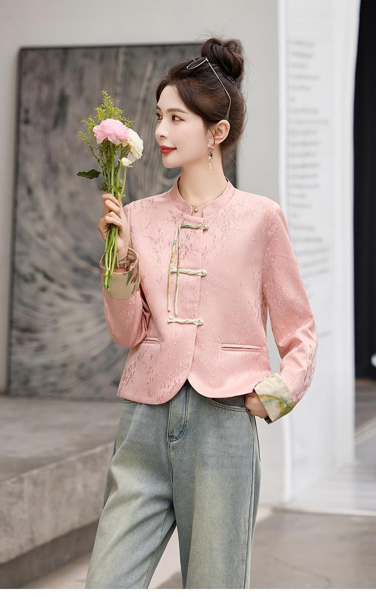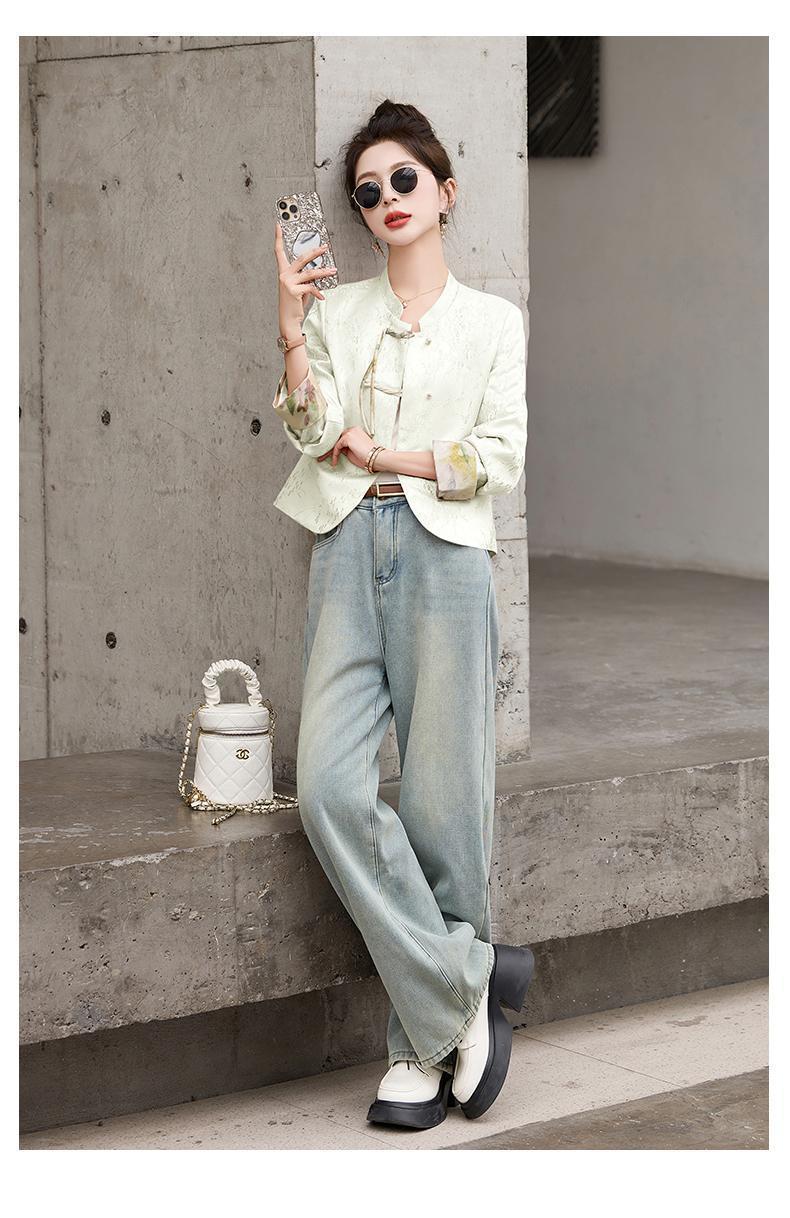 새로운 중국 스타일 국가 스타일 짧은 코트 여성의 봄 인기있는 새로운 기질 매일 착용 버튼 라운드 넥 탕 코트스토어 가기