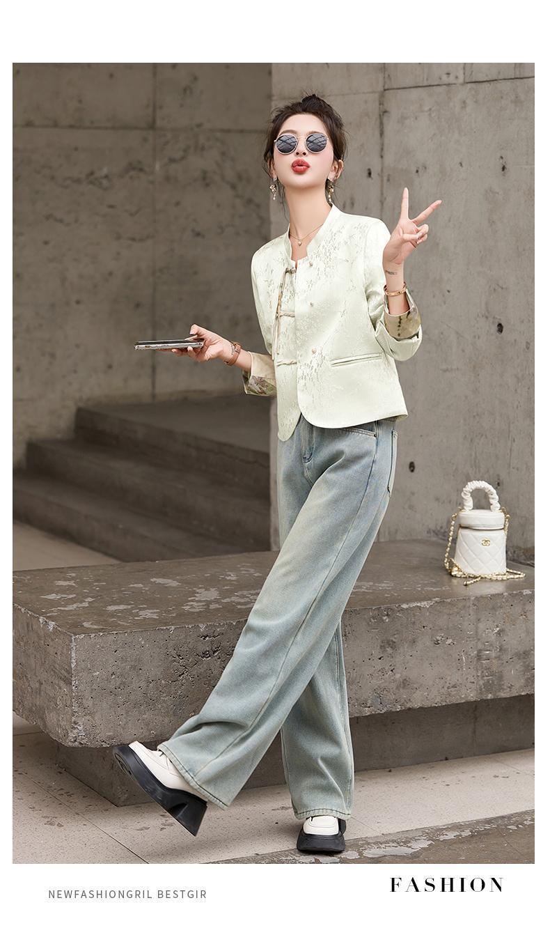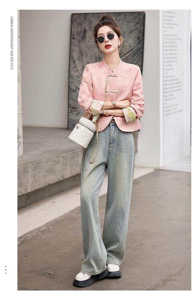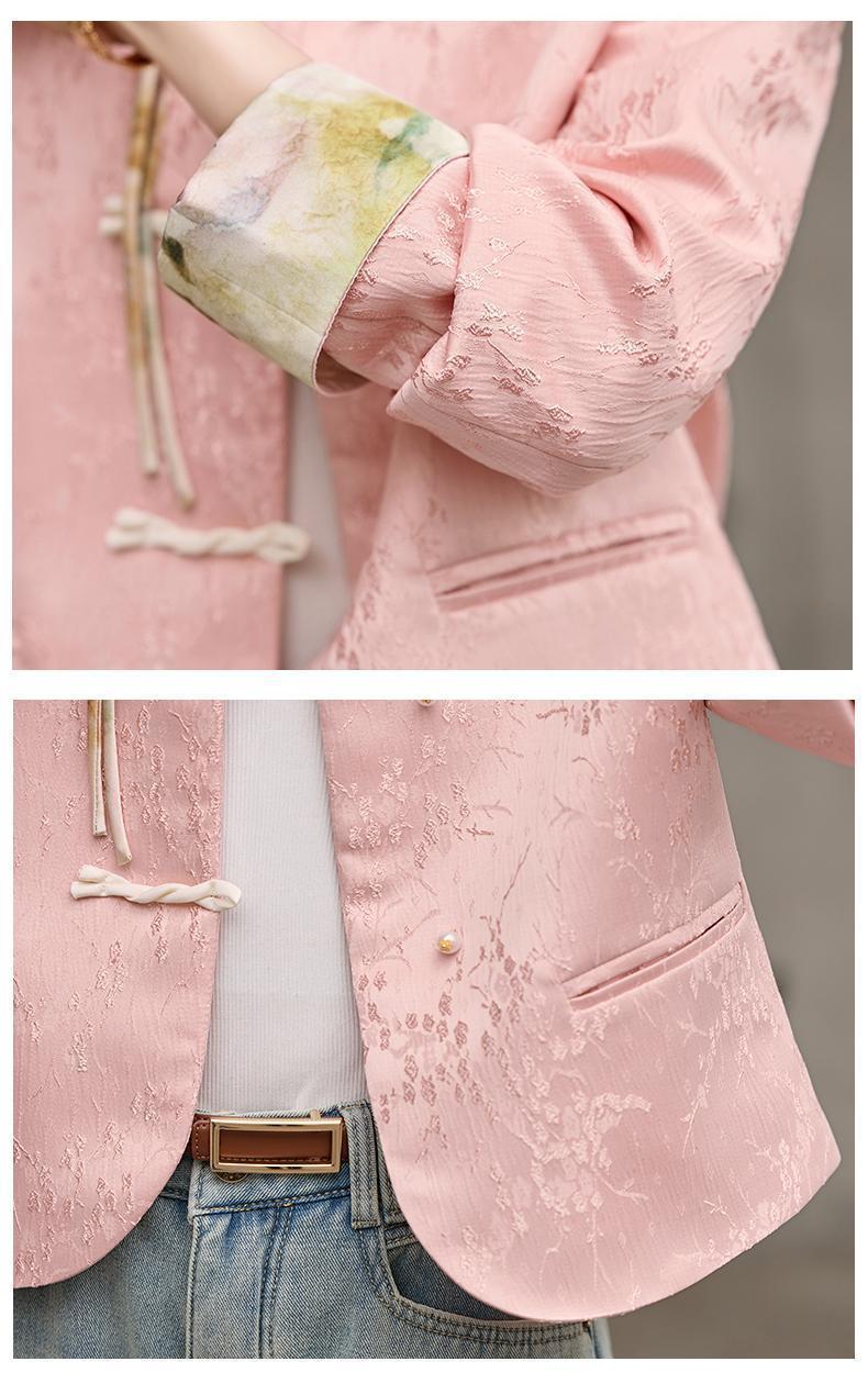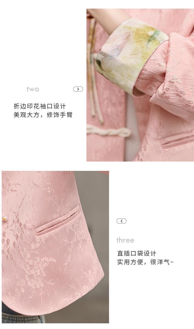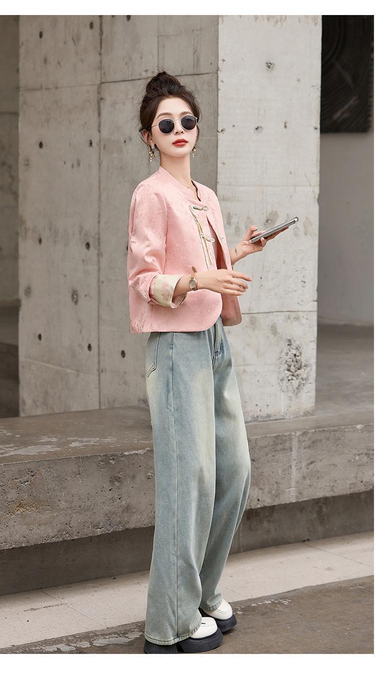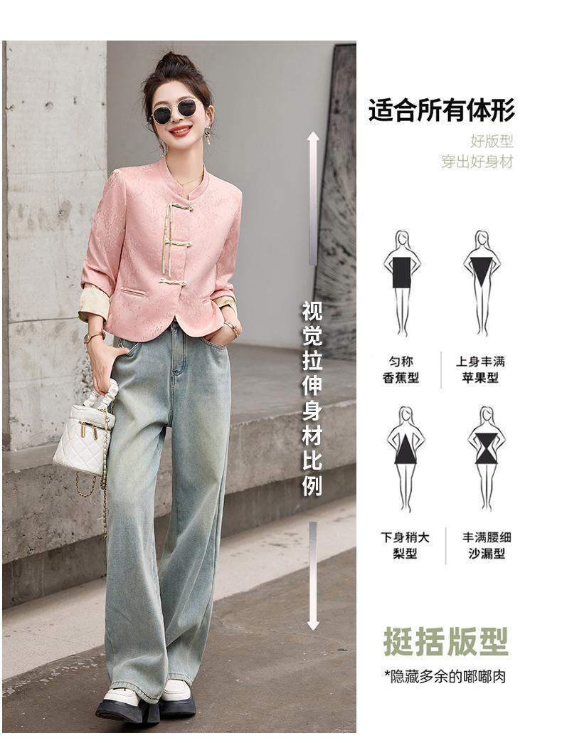 새로운 중국 스타일 국가 스타일 짧은 코트 여성의 봄 인기있는 새로운 기질 매일 착용 버튼 라운드 넥 탕 코트스토어 가기