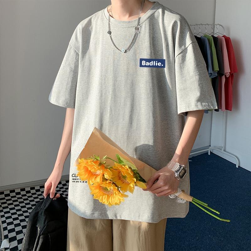 100% 순수한 면화 플러스 사이즈 플러스 사이즈 지방 1.00 kg-150.00 kg 남성 청소년 및 학생을위한 여름 유행 느슨한 캐주얼 티셔츠