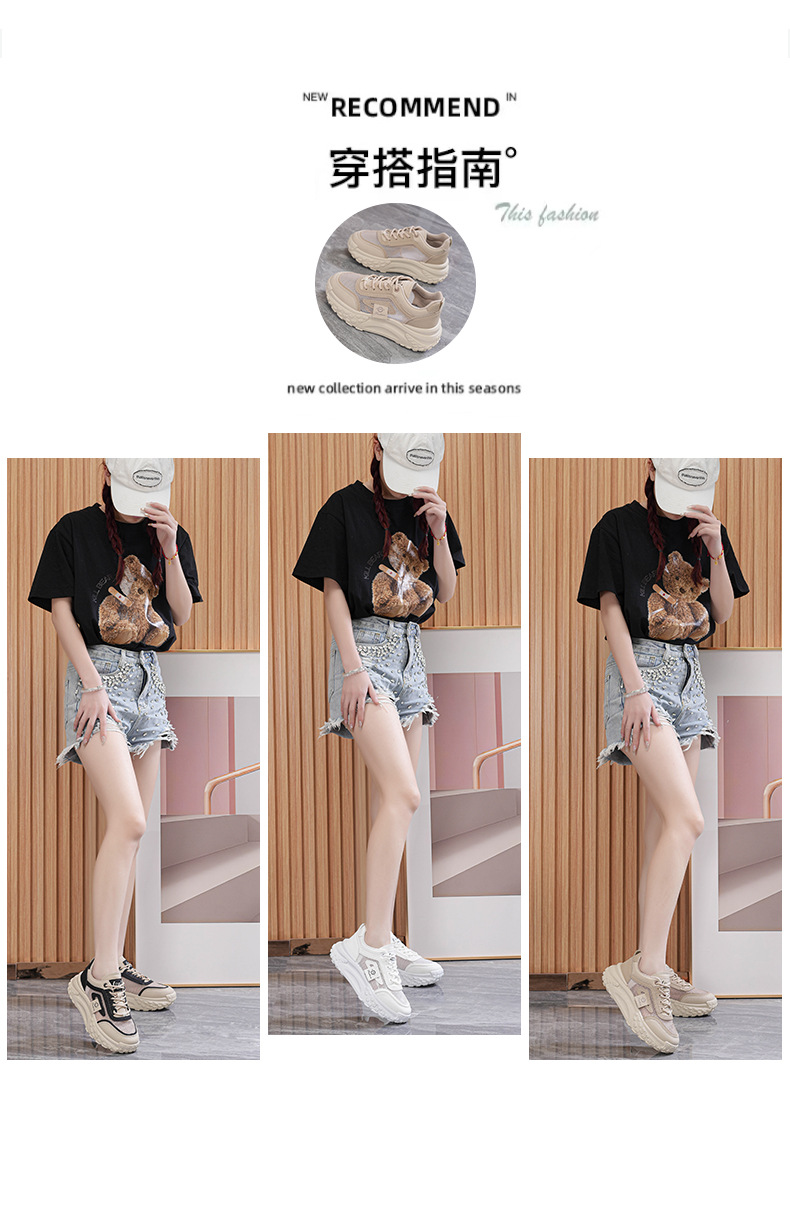 2024 년 여름 새 토레 신발 Ins 한국 스타일 여성 학생 레저 메쉬 통기성 두꺼운 단독 높이 증가 XY068스토어 가기