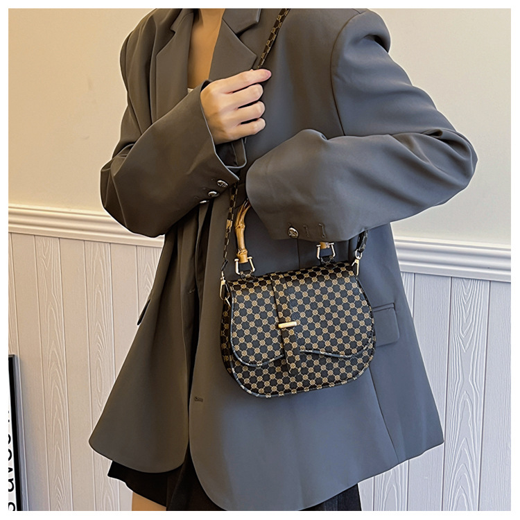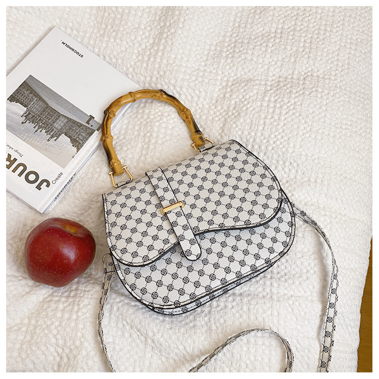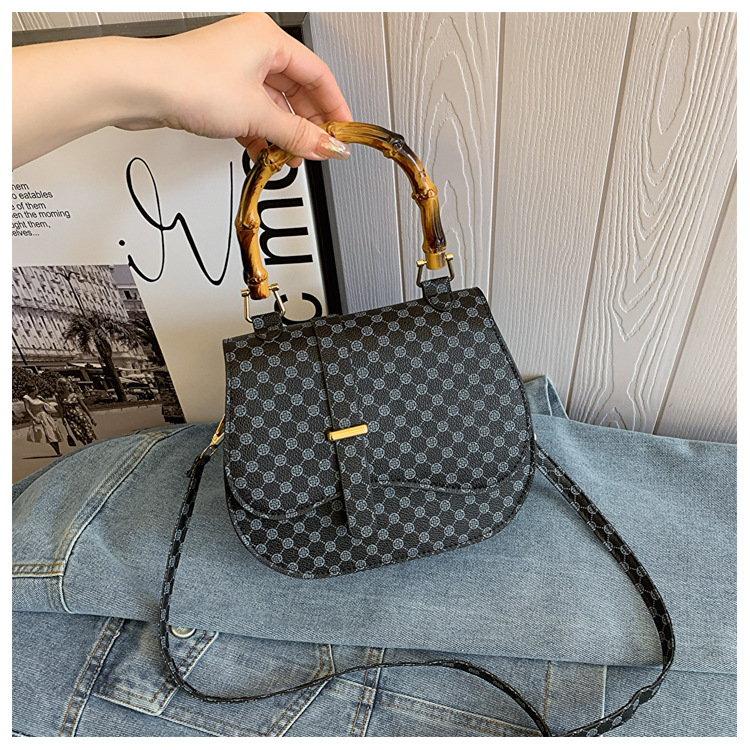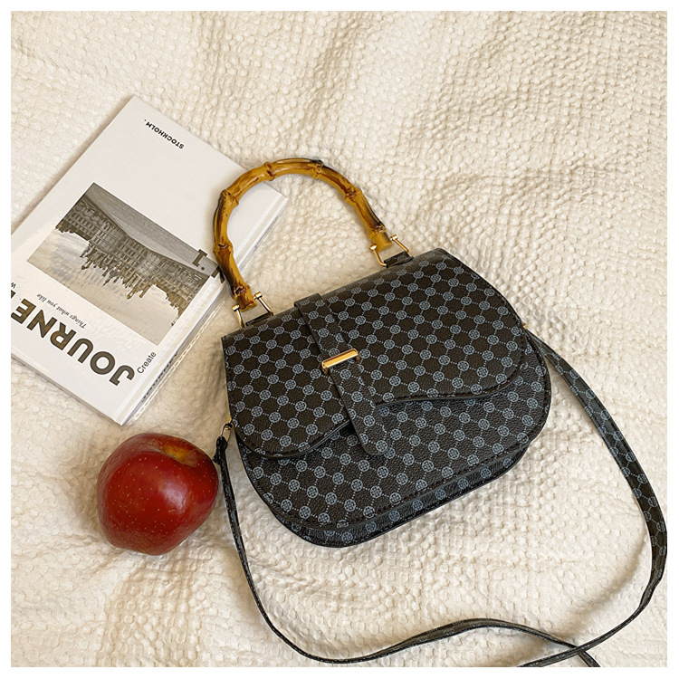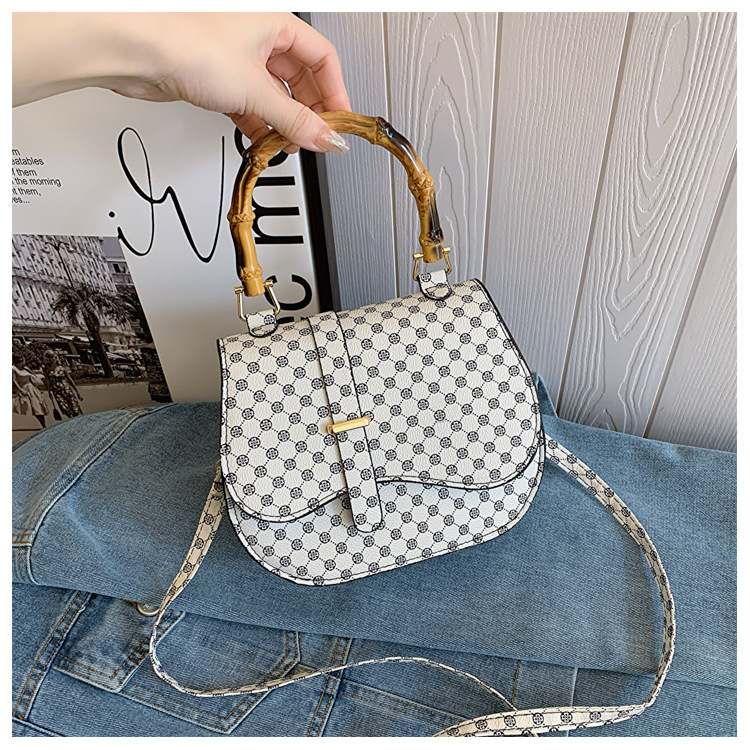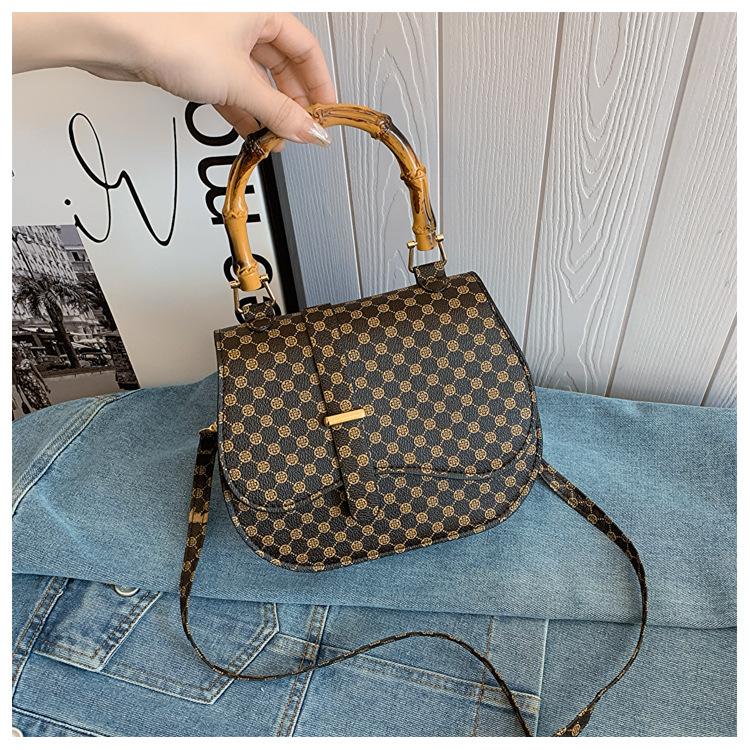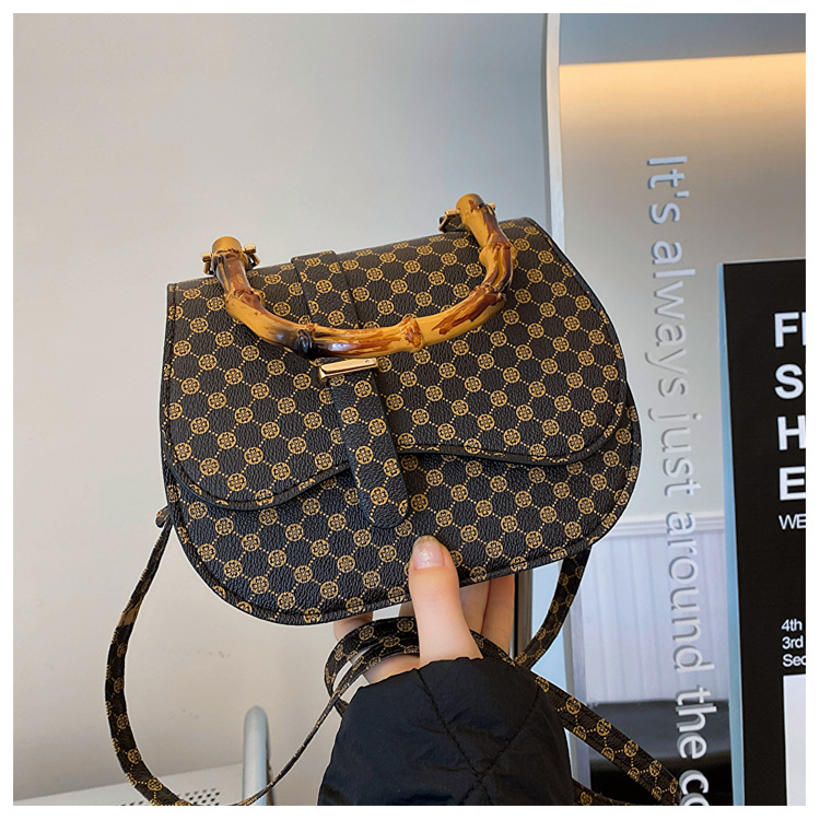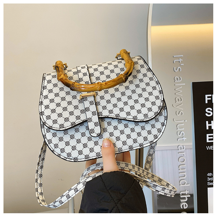 우아한 간단한 패션 한국 레트로 2024 새로운 인쇄 디자인 나무 휴대용 크로스 바디 안장 언더암 가방스토어 가기