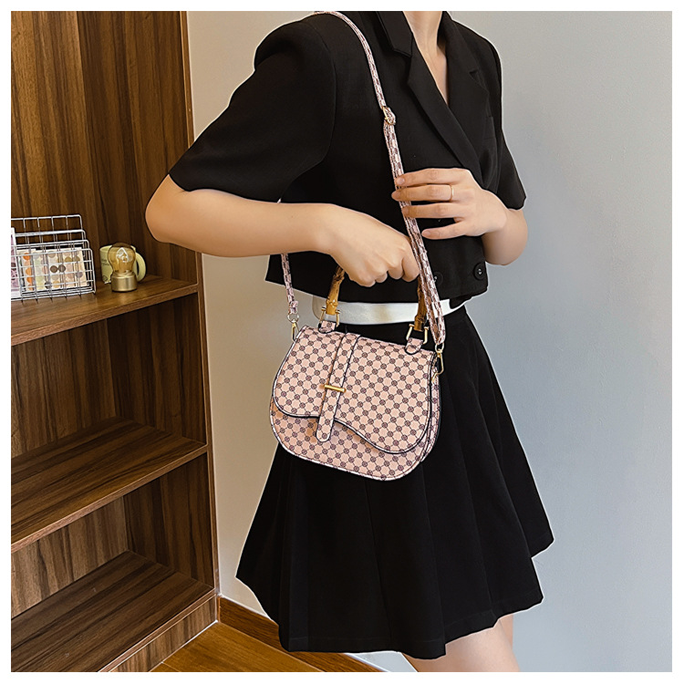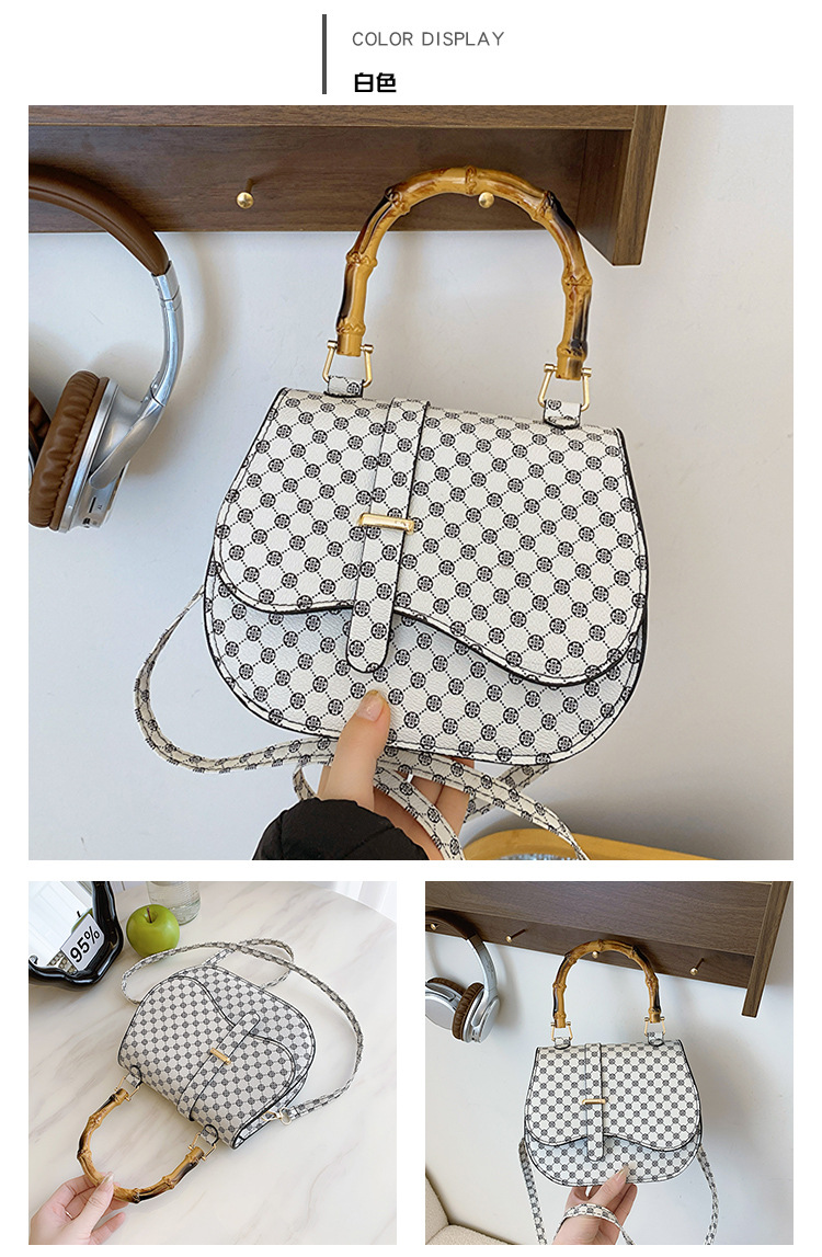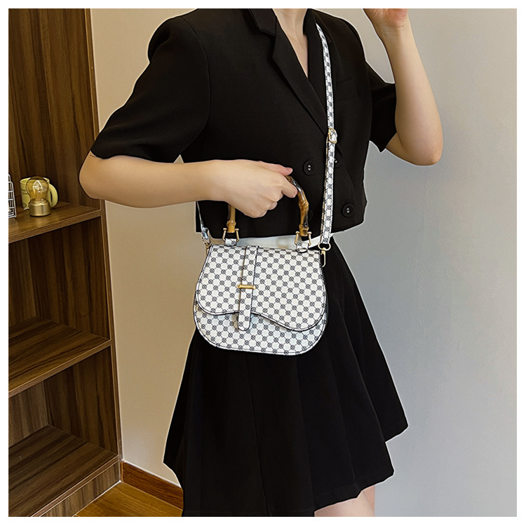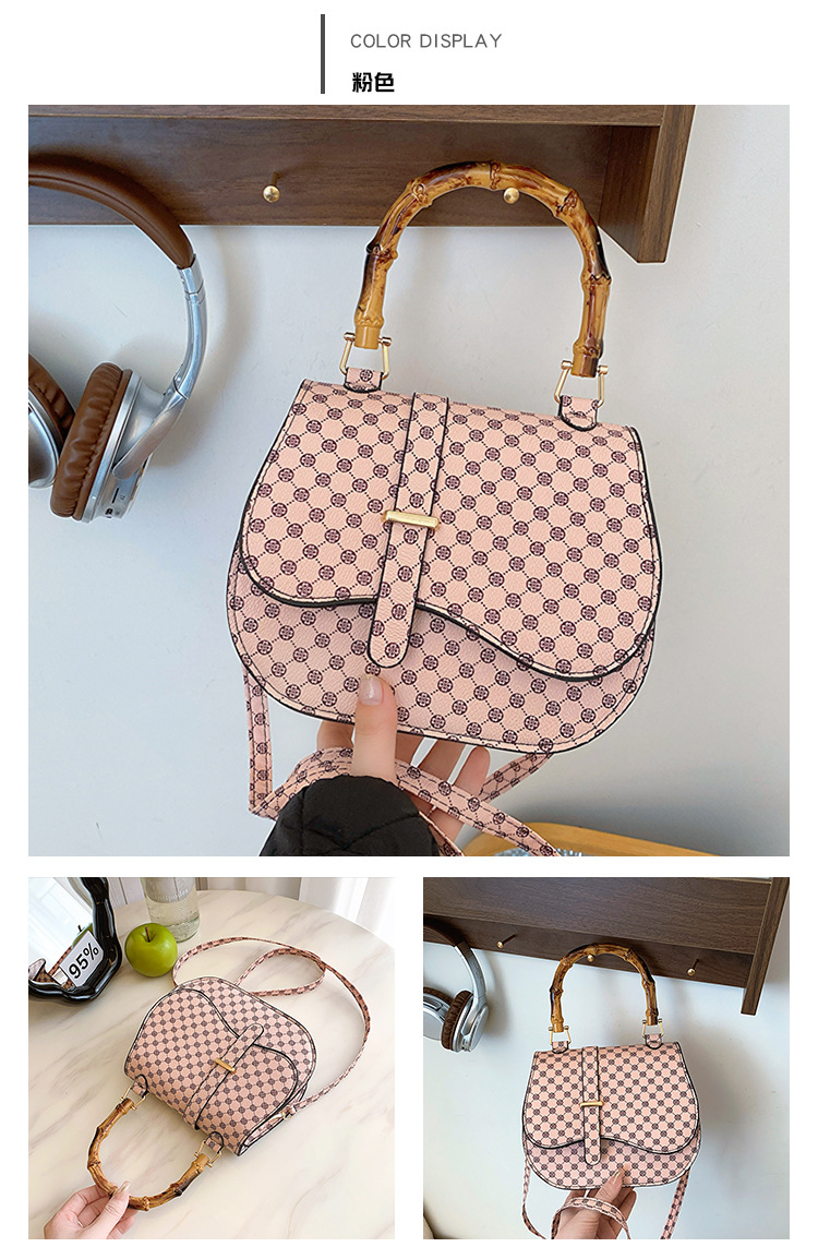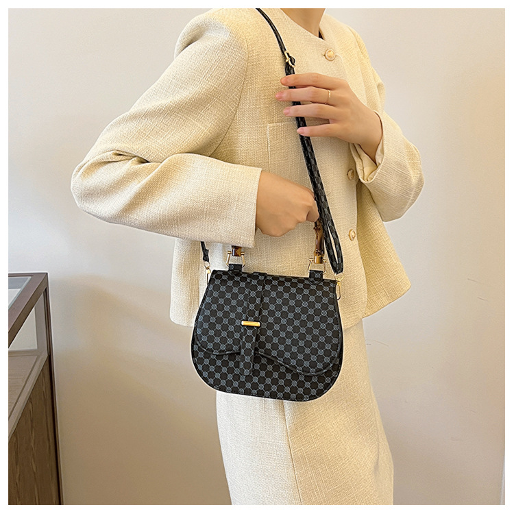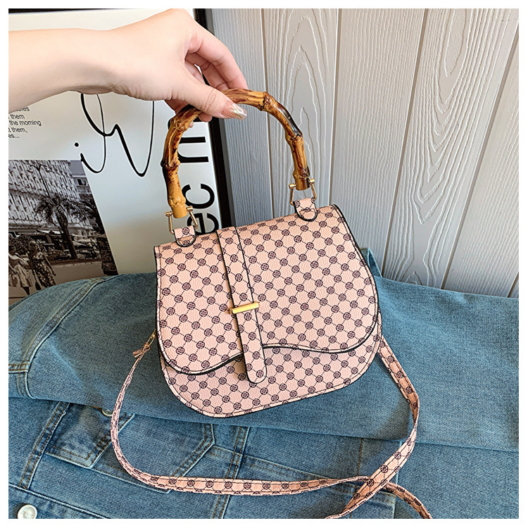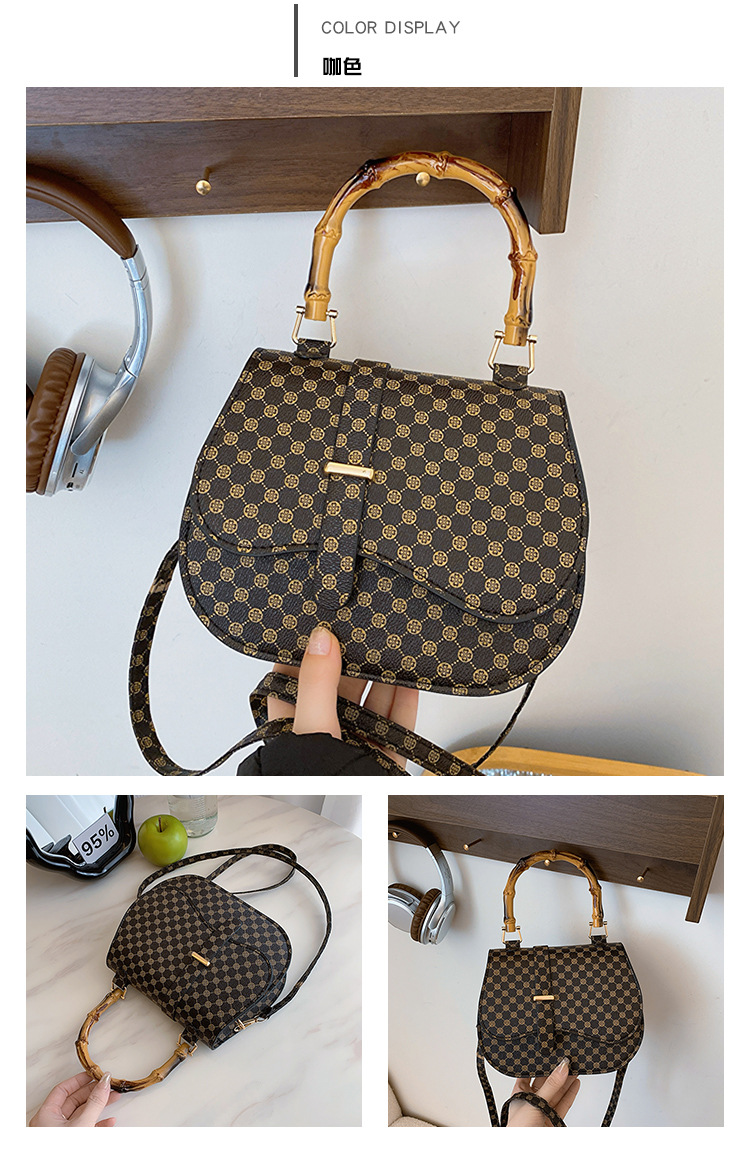 우아한 간단한 패션 한국 레트로 2024 새로운 인쇄 디자인 나무 휴대용 크로스 바디 안장 언더암 가방스토어 가기